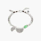 Introducing the Chrysoprase Horizon Bracelet, a bold piece for everyday wear. This bracelet features a beautiful chrysoprase bead, known for its powerful ability to heal emotional wounds and promote forgiveness, compassion, and trust. The bracelet is made from Hill Tribe Silver, offering a touch of artisanal elegance, and is strung on durable polywax thread for lasting wear. Adorning the bracelet are intricate Hill Tribe Silver swirl charms, adding a unique and stylish feel.