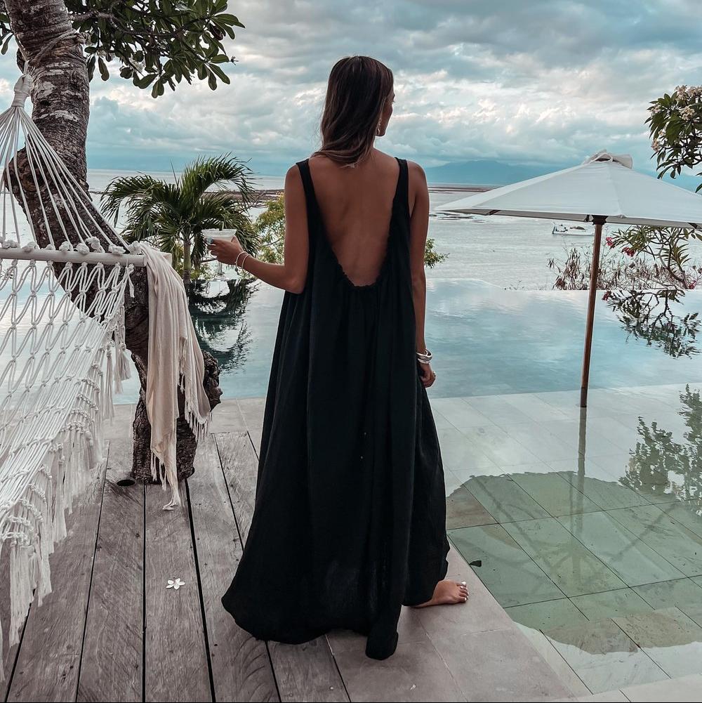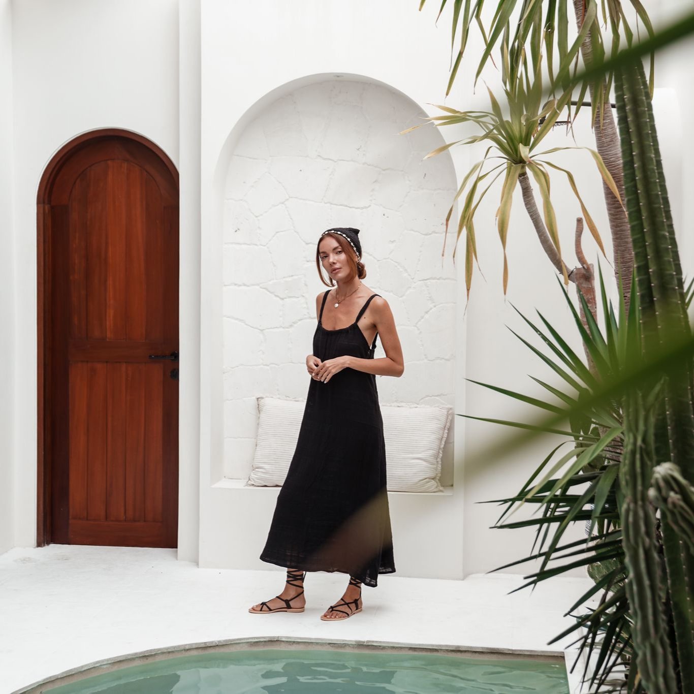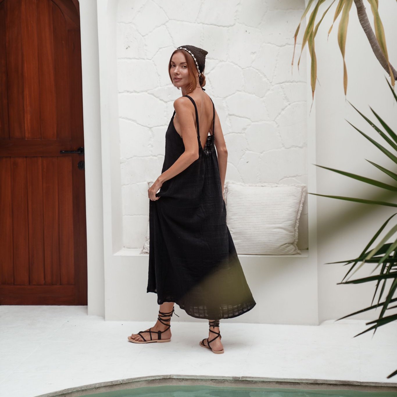 Wear Ishtar relaxed and loose, belted for a cinch or to show off a statement piece, alternatively you can use the ties at the back as a belt, bringing them to the front the further accent the waist with minimal takeaway from the dress as with a belt.