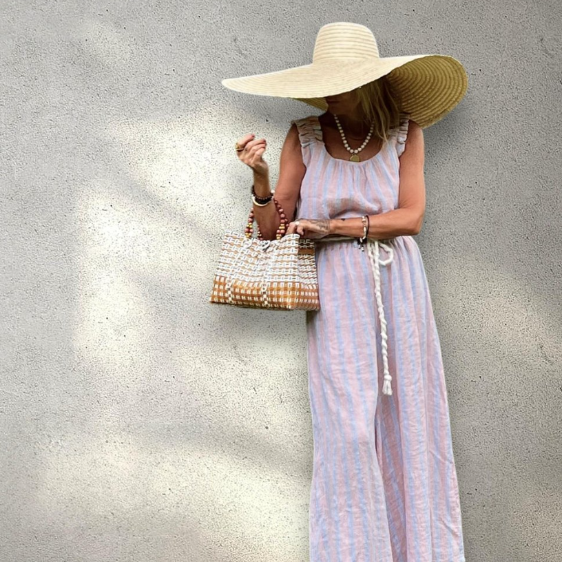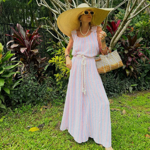 The Milano is a palazzo style pant made from 100% linen Italian crinkle linen. They have wide legs drape, an elastic waistband with an additional rope tie and side pockets.