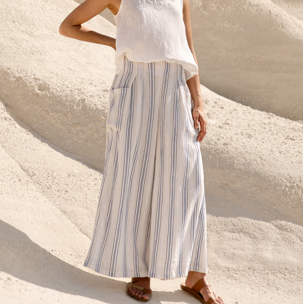 The Milos Linen Pants are tailored for ease, a touch of structure, and all-day wear. Cut with a flattering flat front and double pleats, they soften through the hip and fall into a wide-leg silhouette. A smocked back waistband adds comfort and flexibility, while reinforced seams ensure they hold up to real life. These are your elevated, everyday pants.