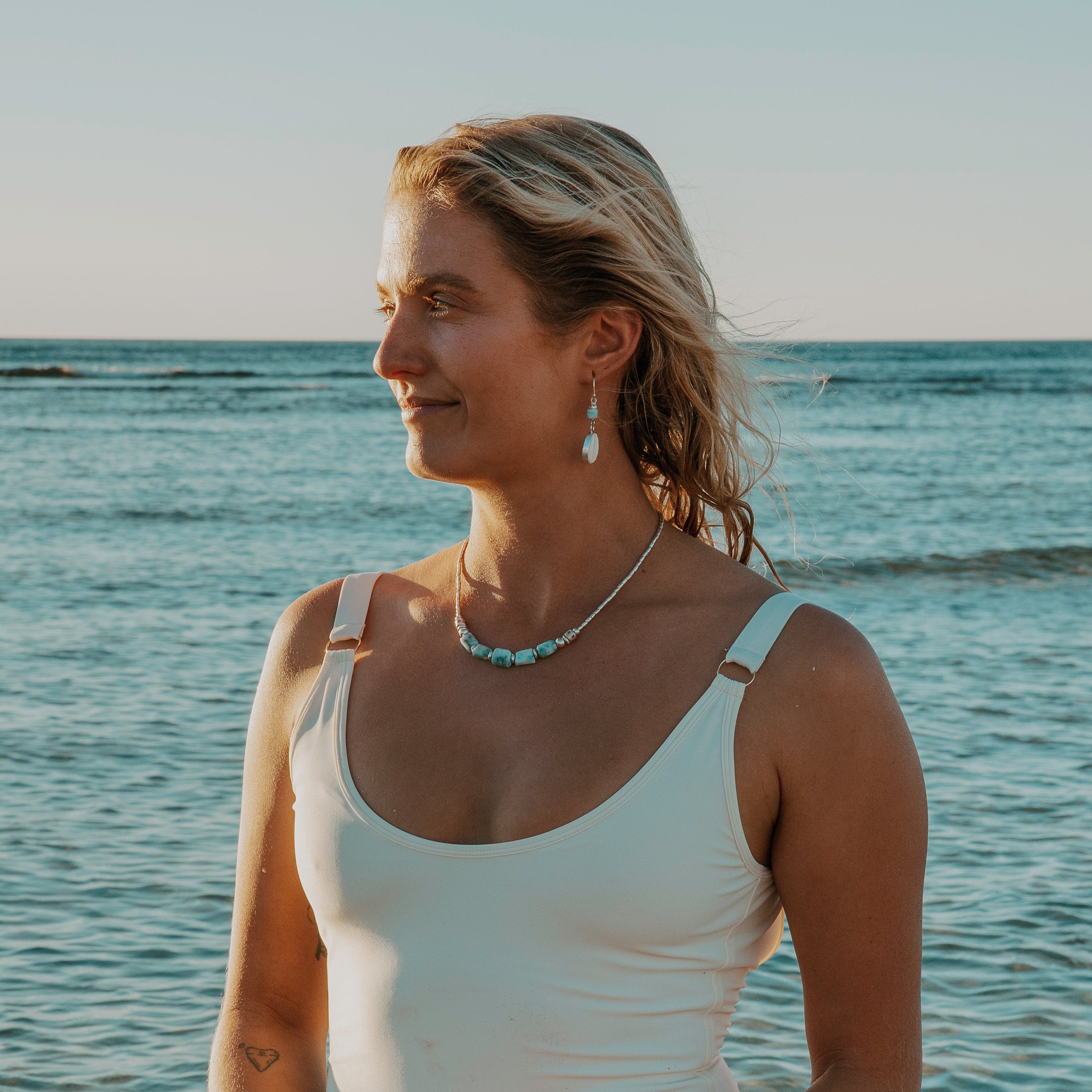Discover the soothing energy of Larimar with our Larimar Shell Drops. Known for its calming properties, Larimar is believed to promote tranquillity and self-expression. Each earring features a tumbled Larimar stone, accentuated by Hilltribe silver spacer beads and a sterling silver ear hook for comfortable wear. The addition of a cowrie shell, set in sterling silver, adds a touch of coastal elegance.