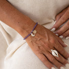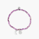 Introducing the Amethyst Hatha Bracelet, a harmonious blend of spiritual symbolism and natural beauty. This elasticated bracelet features vibrant amethyst beads, adorned with Hilltribe sun and moon charms. In Sanskrit, "Ha" means sun and "Tha" means moon, together representing the balance of forces. Amethyst, known for its calming and protective properties, promotes clarity, intuition, and emotional balance.