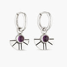 Let your intuition shine with the Amethyst Eclipse Huggies. Handcrafted from sterling silver, these radiant earrings feature a polished amethyst nestled beneath an eclipsing sun underlay — a symbol of clarity and cosmic connection. Known for its calming energy, amethyst is believed to soothe the mind, protect your spirit, and enhance inner wisdom. A celestial blend of strength and serenity, these huggies are a daily reminder to stay grounded while reaching for the stars.