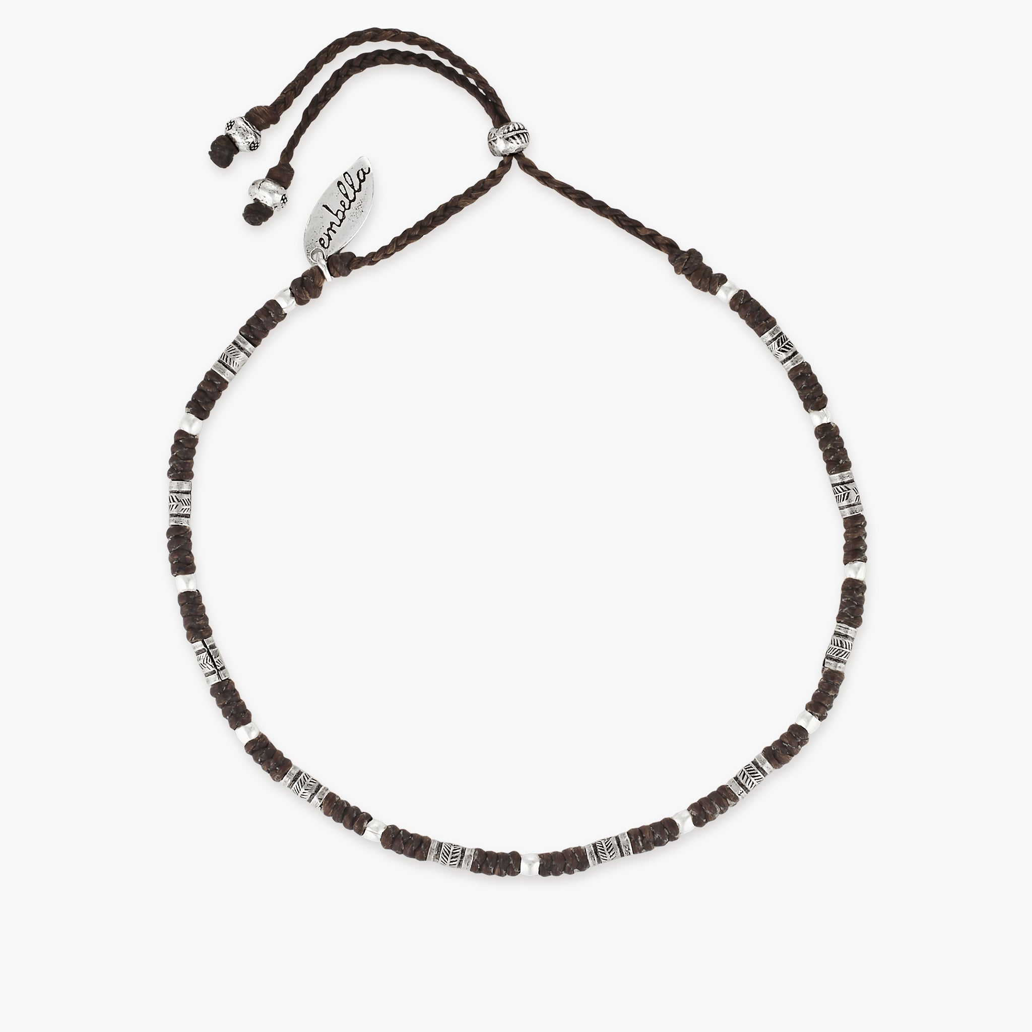 Elevate your boho-inspired style with our Bamboo Anklet. Skillfully handcrafted with Hilltribe Silver and complemented by a polywax cotton band, this anklet symbolises growth, harmony, and your connection to the natural world. The organic texture and vibrant colours of the anklet serve as a daily reminder of your love for nature. Designed with an adjustable bead for a customisable fit, simply slide it to your desired length and tie a soft knot to keep it in place. Embrace the elegance of the Embella Bamboo Anklet and let your inner free spirit shine.
