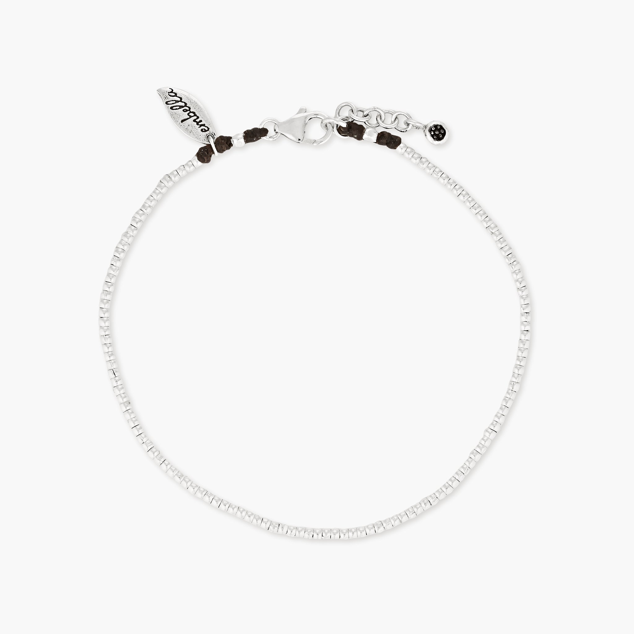 Embella’s boho styled anklets are designed in one of two ways; they either have a sterling silver parrot clasp and chain with approximately 2–3cm of adjustment or a Hilltribe silver bead on polywax cotton cord, which can adjust your anklet more generously.