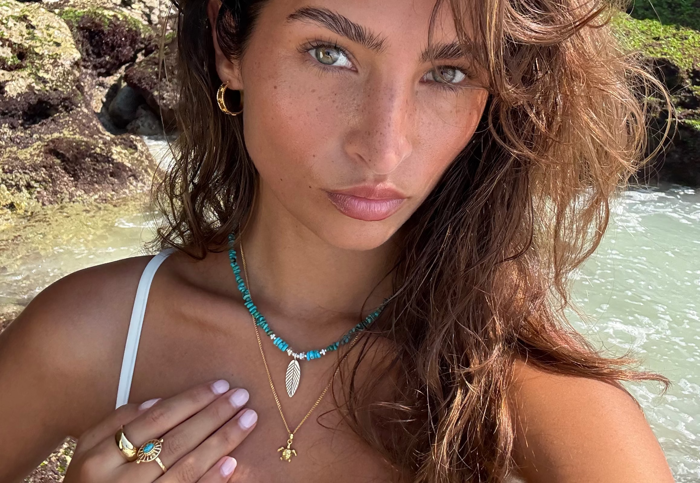 From delicate pearl chokers to bold turquoise beaded bracelets and layered necklaces, Selina shows how to wear Embella pieces your way — whether it’s a barefoot morning by the sea or an evening beneath the stars.