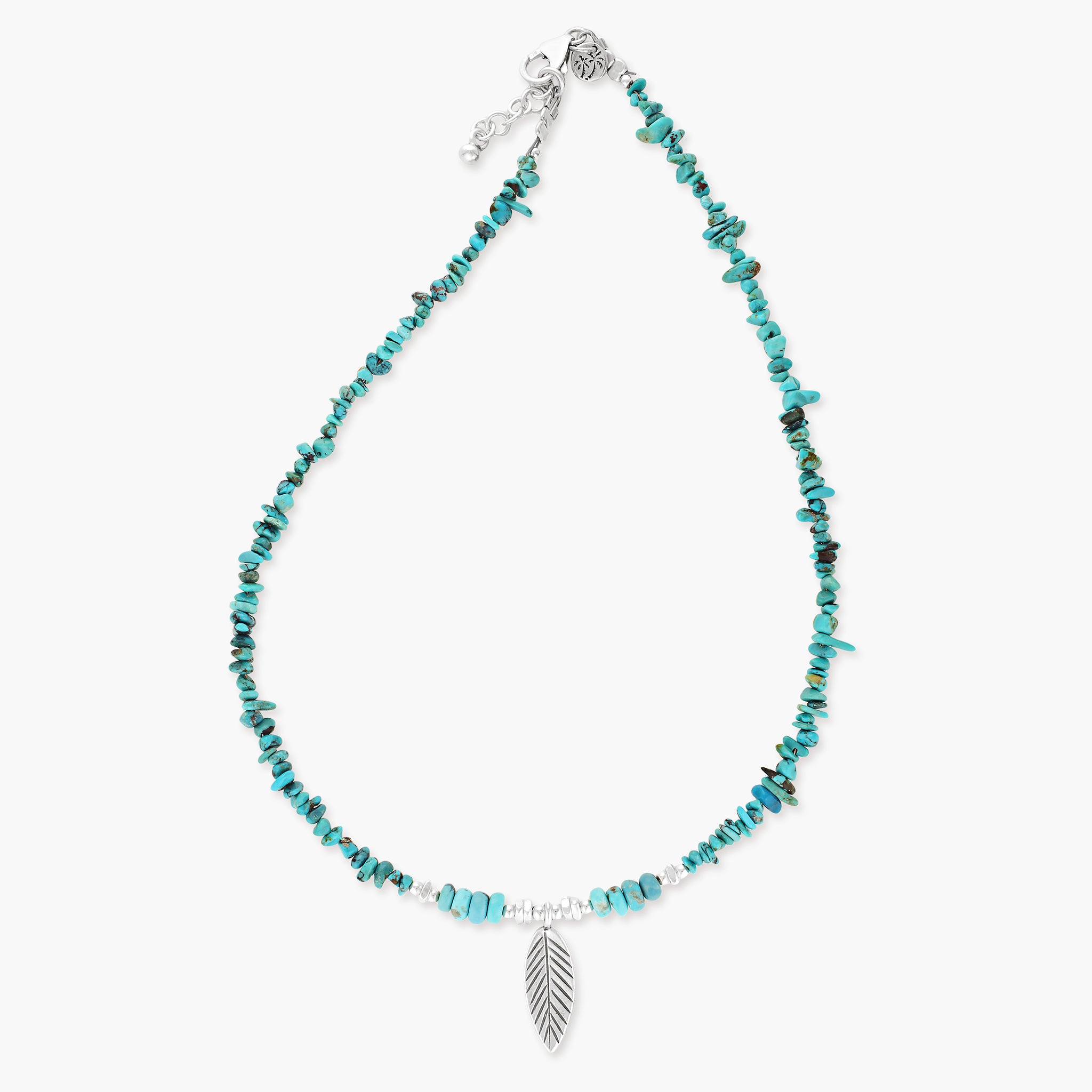 Embrace the serenity of nature with the Turquoise Willow Necklace, a graceful design that evokes the beauty of a tranquil forest stream. Featuring turquoise beads celebrated for their calming and protective properties, this necklace is accented with Hill Tribe Silver spacers and a delicate leaf charm, symbolizing growth and renewal. Finished with a sterling silver parrot clasp, this timeless piece is perfect for everyday wear or as an elegant addition to your layered looks.