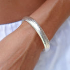 Much like the reflective light dancing across the sea, our Reflections Bangle effortlessly combines the strength and playful nature of the sea. Made from hand crafted and stamped solid Hill Tribe Silver, the Reflections Bangle is easily worn as a beautiful layering piece.