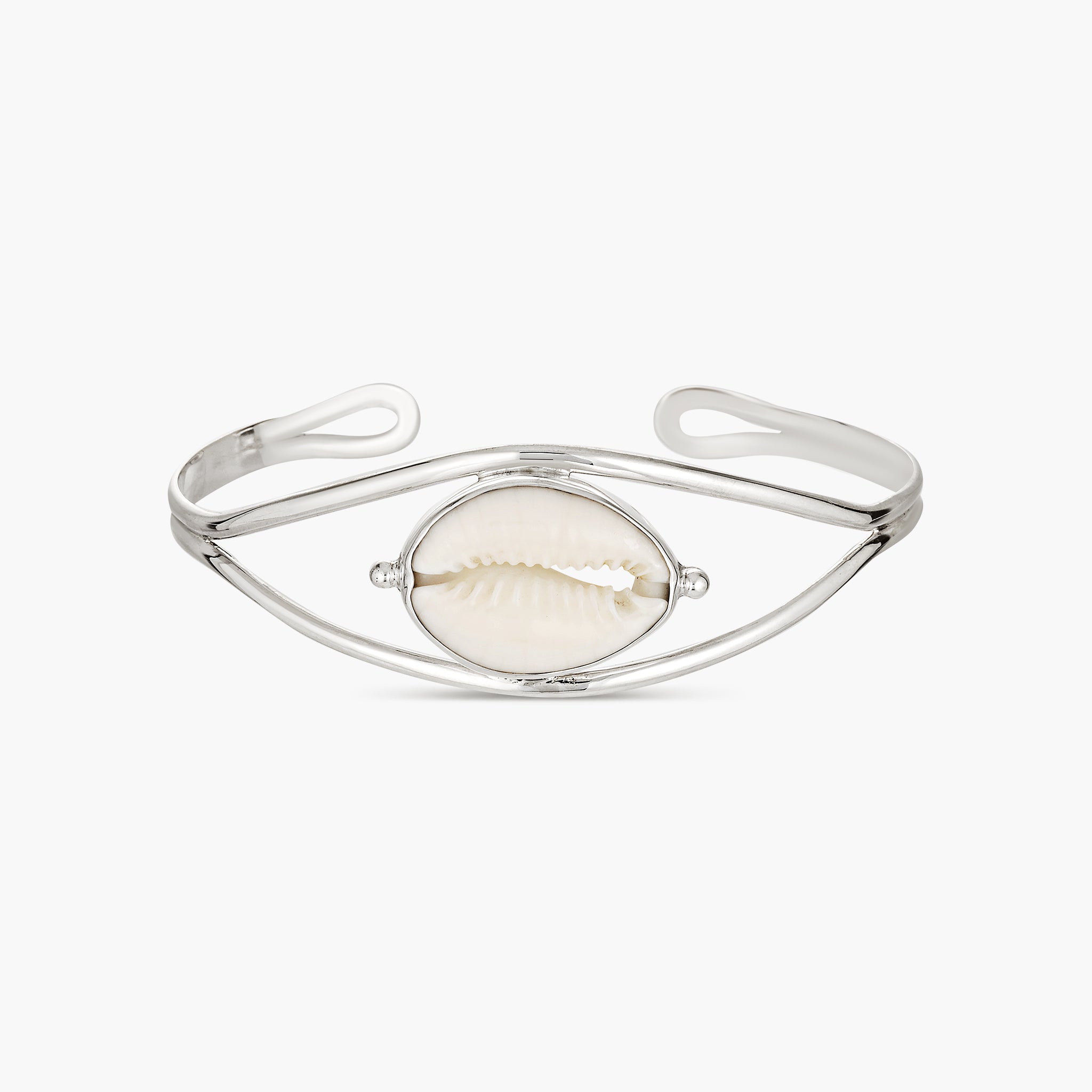 The Cowrie Serenity Cuff is a sculptural expression of calm and coastal beauty and hero of our Rituals collection. Crafted in sterling silver, this double band cuff features a cowrie shell set in silver, framed by delicate silver sea bubble details at the top and bottom. Grounded in ocean symbolism and designed to feel both strong and serene, this statement cuff is made to be worn as part of your everyday ritual—timeless, tactile, and beautifully balanced.