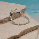 Our Radiant Moon Bracelet is handcrafted with care, featuring traditionally crafted Hilltribe Silver beads, each one mirroring the moon's soft light against the gentle sway of the ocean. The Polywax Cotton thread adds a touch of earthiness, symbolising the connection between land and sea. Inspired by the vastness and tranquility of the ocean, this bracelet embodies the essence of the water's allure. Embrace the serenity of the sea in the moonlight and cherish the memories of your beach adventures with this timeless treasure.