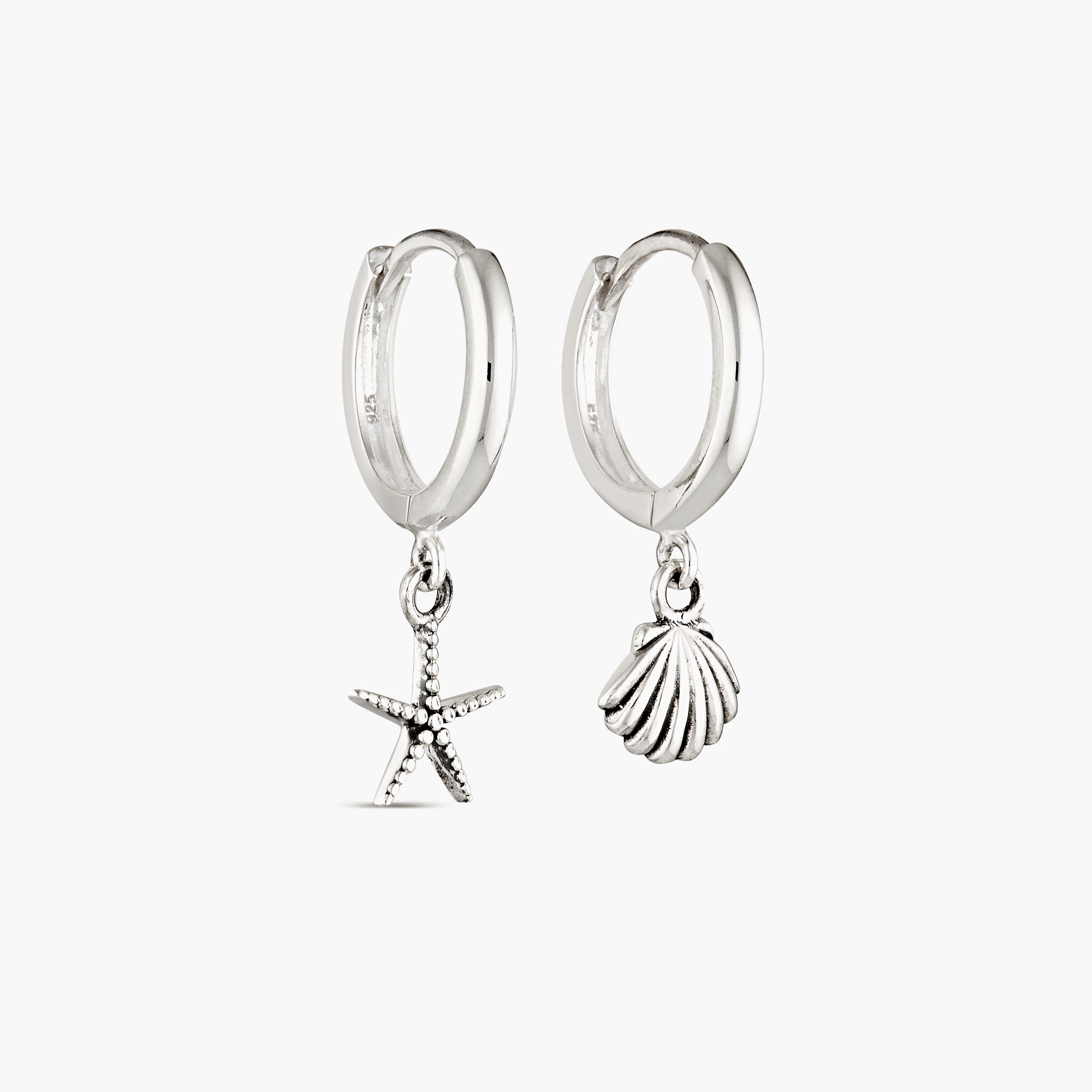 Salt on your skin, treasures at your feet. This mismatched pair features a sterling silver starfish and a delicate clam shell — little keepsakes inspired by days spent wandering the shoreline. Designed to hug close to the ear, they’re effortless, playful and perfect for everyday wear. A subtle nod to the sea, wherever you are.