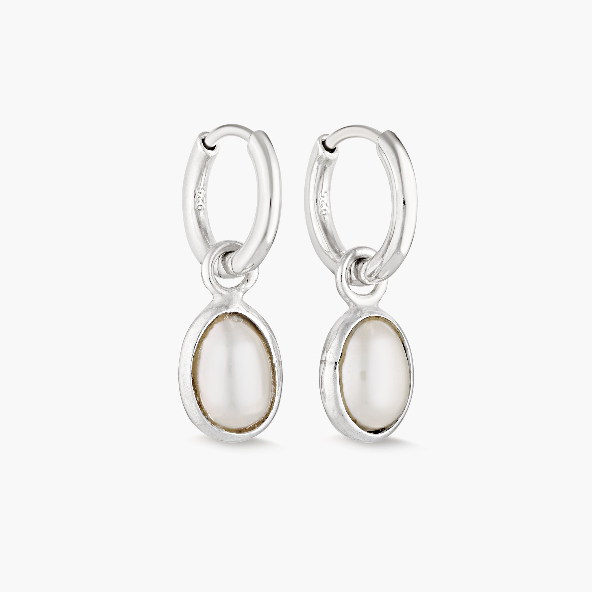 Your new everyday essential. A petite oval pearl is set in sterling silver, suspended from classic sterling silver huggies for a look that feels soft, modern and easy to wear. Delicate yet distinctive, they’re perfect for layering through multiple piercings or wearing solo for a subtle glow. Effortless, feminine and made for every era of you
