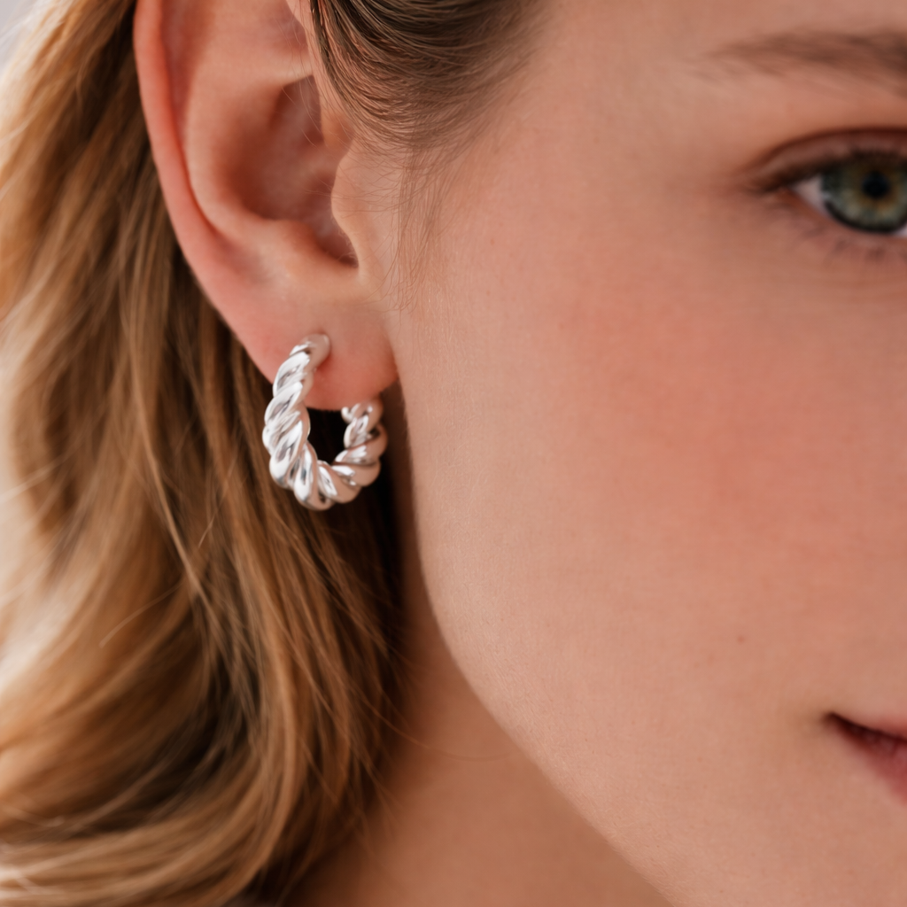 A subtle twist on a classic. Crafted in sterling silver, the Silver Island Huggies feature a softly twisted silhouette that reflects the rhythm of the tide. Textural yet refined, they catch the light from every angle while remaining effortless enough for everyday wear. Perfect for layering or wearing solo as your go-to silver staple.