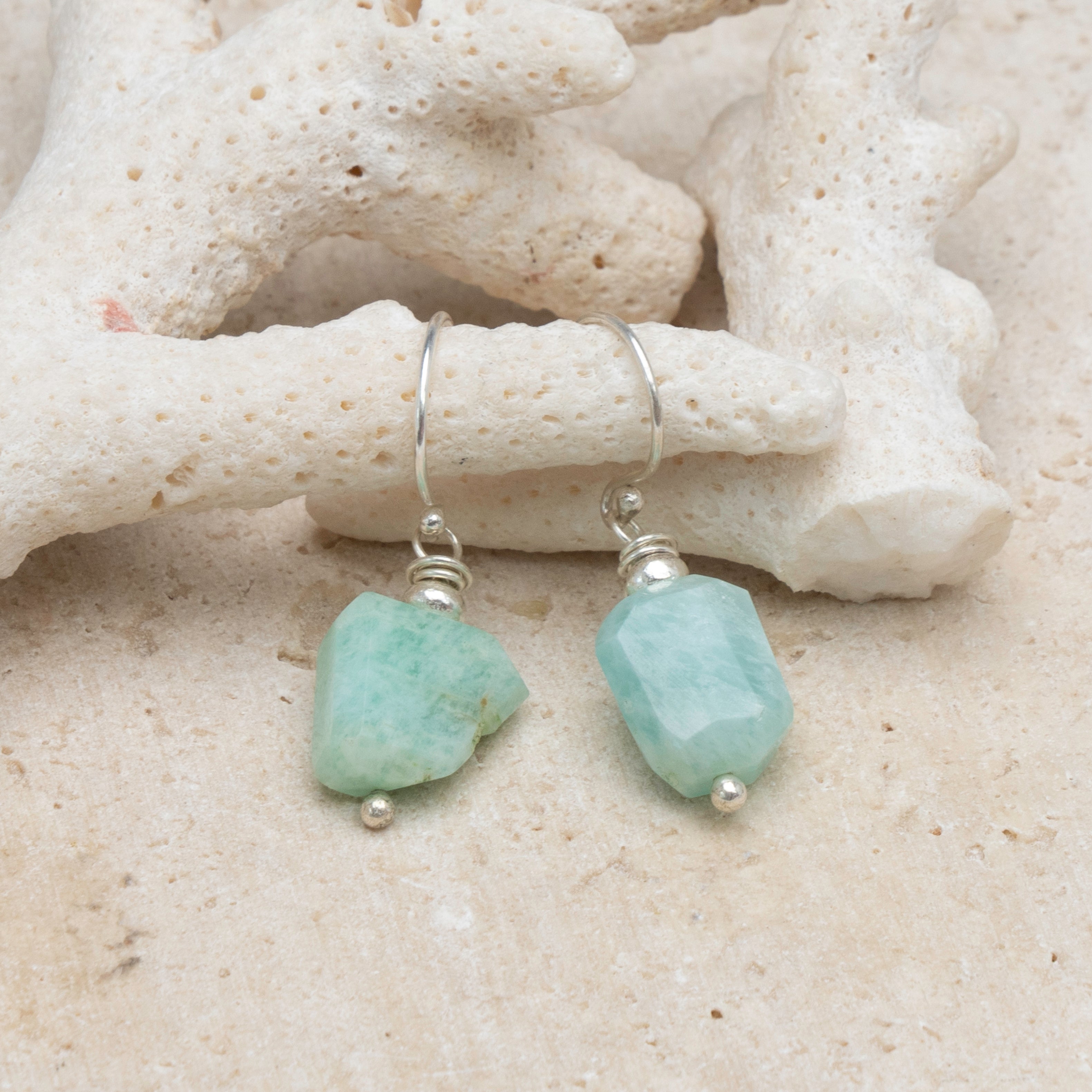 Dive into serene style with the Amazonite Sea Drops. These drop earrings, crafted from calming amazonite and set in sterling silver, capture the peaceful hues of the sea. With a graceful, minimalist design, they bring a touch of oceanic tranquility and timeless elegance to your everyday look. Perfect for those who find inspiration in the beauty of the natural world.