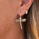 The Dragonfly Grace Drops feature delicate Hill Tribe silver dragonflies suspended from fixed Hill Tribe silver ear hooks. Symbolising transformation and adaptability, dragonflies are a timeless emblem of change and self-realization. These earrings capture the graceful movement of dragonflies in flight, offering a touch of whimsy and elegance to any outfit.