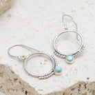 Our Mermaid hoops feature a drop of smooth Larimar, centred with beautiful water drop detailing. A simple lever back post design.