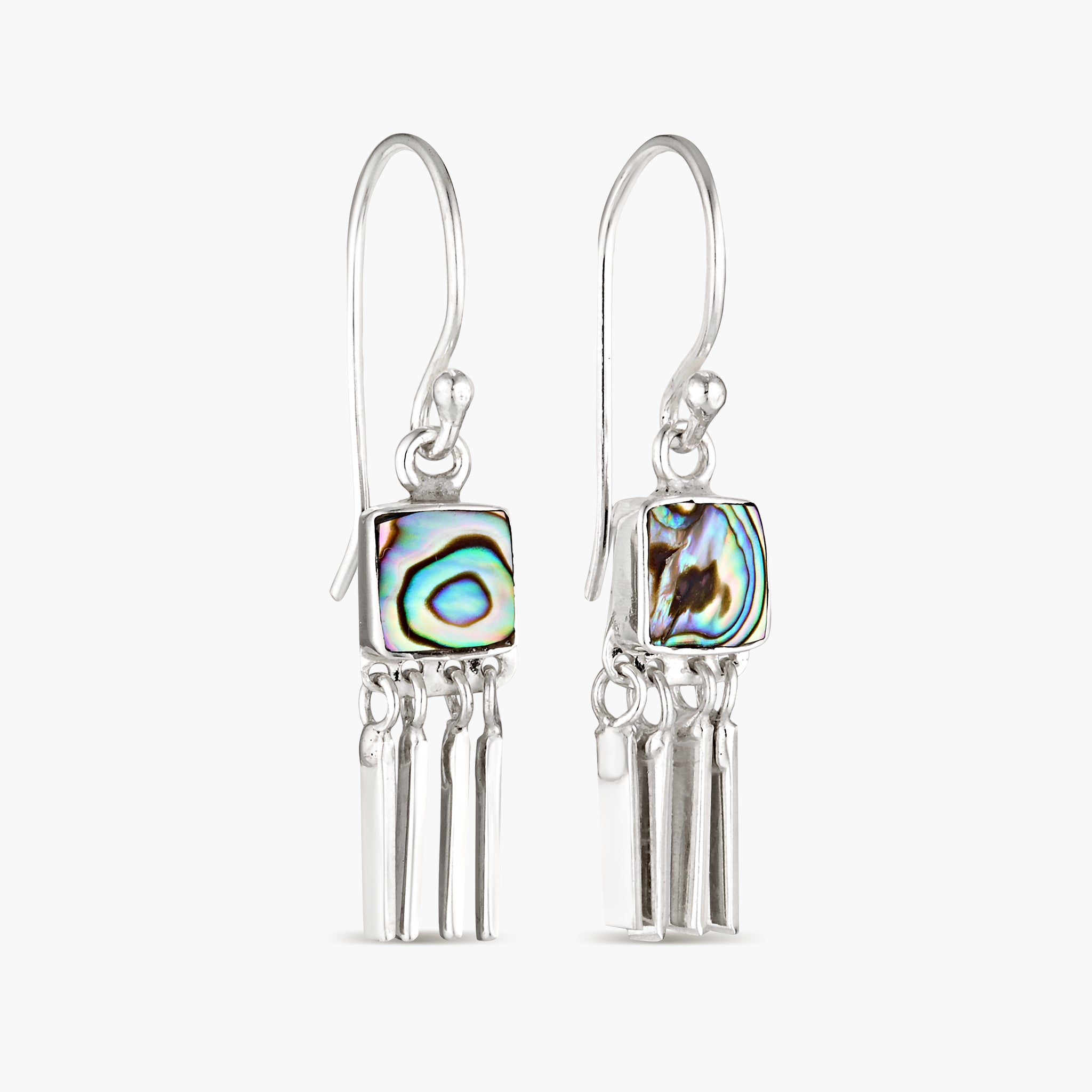 Inspired by the rhythm of the ocean, the Paua Shoreside Drops are a striking blend of natural beauty and artisanal design. Crafted from sterling silver, these elegant earrings feature square-cut Paua shell set in silver, finished with delicate silver hanging pieces that catch the light with every move. Rich in iridescent blues and greens, Paua is a stone of connection and creativity—evoking the ever-changing tides.