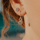 Hand crafted and stamped Hilltribe Silver rising sun charms and beads delicately wired onto a Sterling Silver ear-hook.