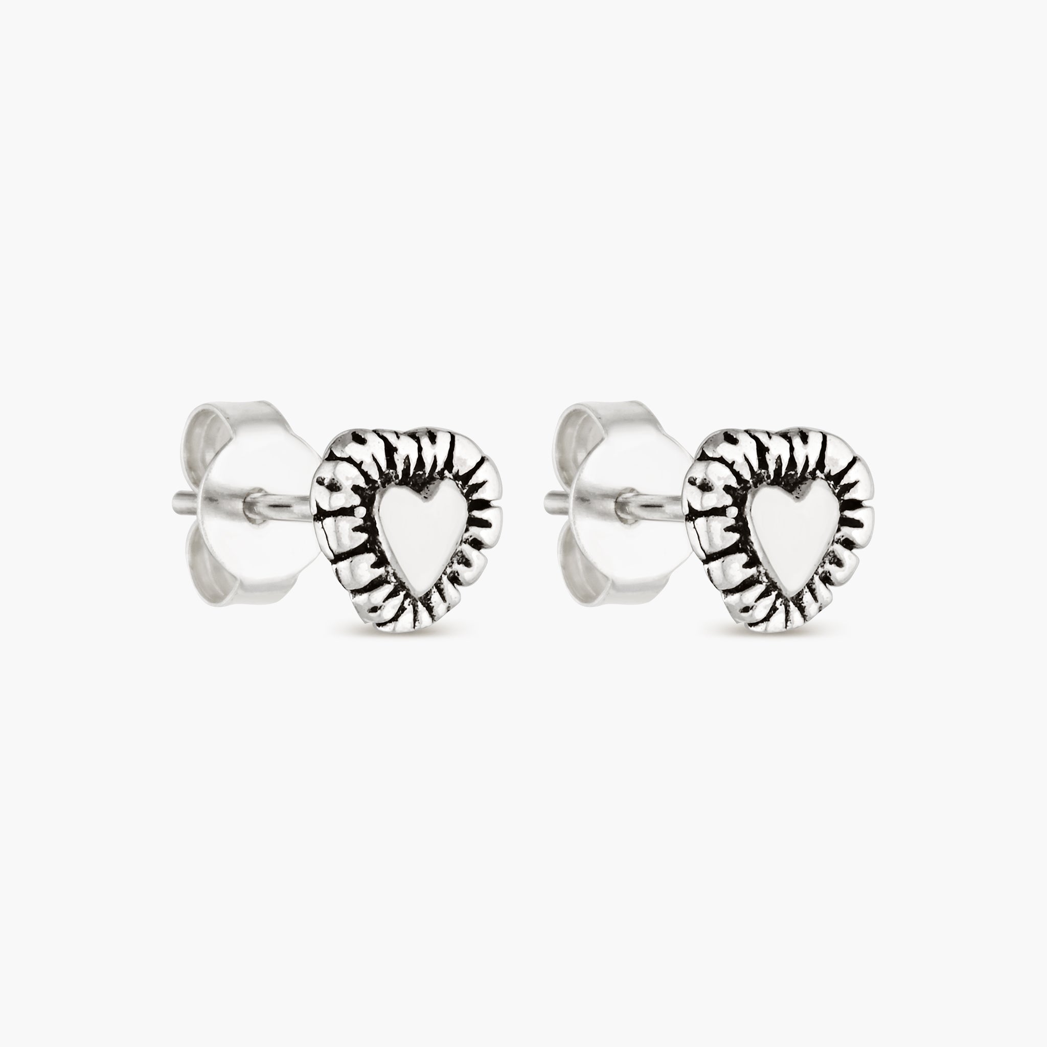 Delicate and full of charm, the Sweetheart Studs are crafted from sterling silver — a simple symbol of love designed to be worn every day. Their subtle shine and petite size make them perfect for layering or gifting to someone special.