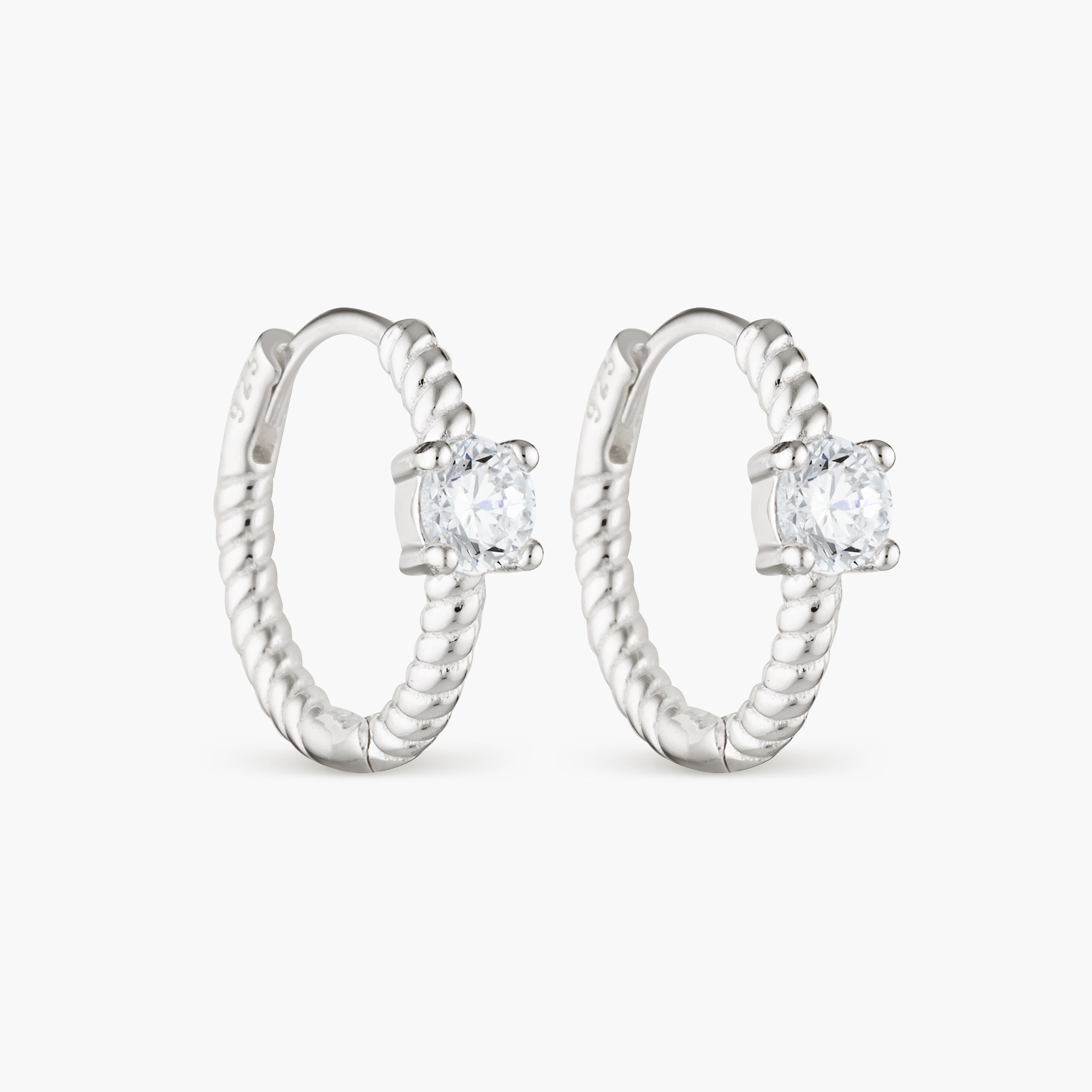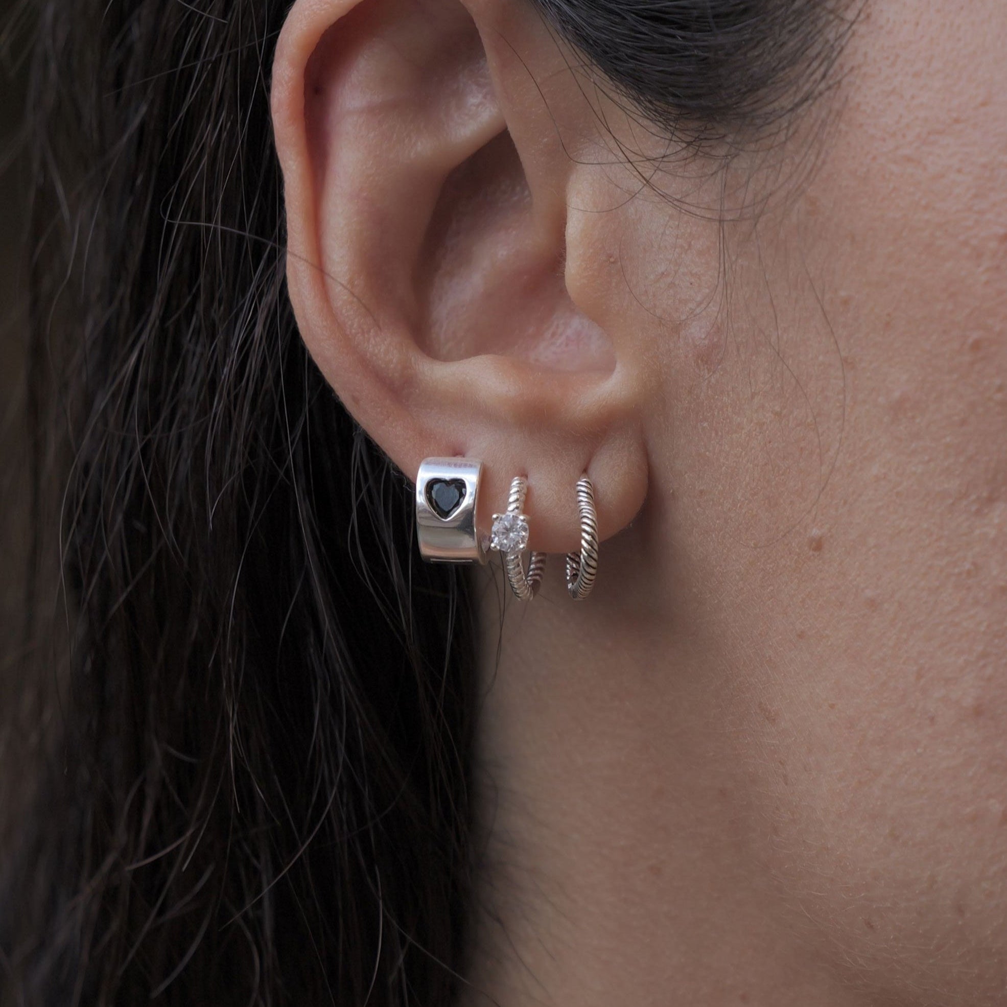 Elevate your everyday look with the subtle sparkle of the Timeless Shimmer Huggies. Crafted from sterling silver and featuring a delicate zirconia stone, these huggies add just the right amount of shimmer—classic, elegant, and effortlessly radiant. Pictured here in our models second piercing.