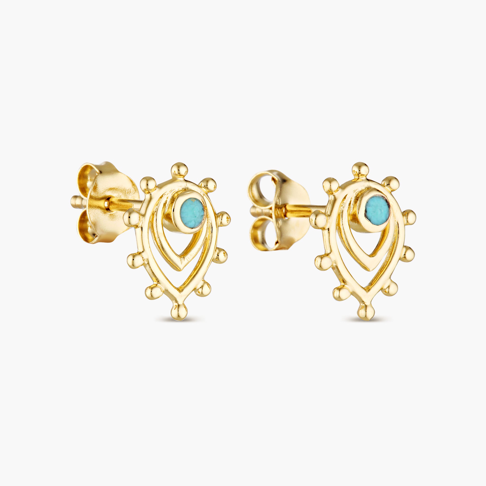 A touch of timeless beauty, the Turquoise Ra Studs feature a delicate teardrop design in gold-plated sterling silver, with a vibrant turquoise stone at the center. Effortlessly classic and perfect for everyday wear, these studs bring a hint of elegance and natural charm to any look.
