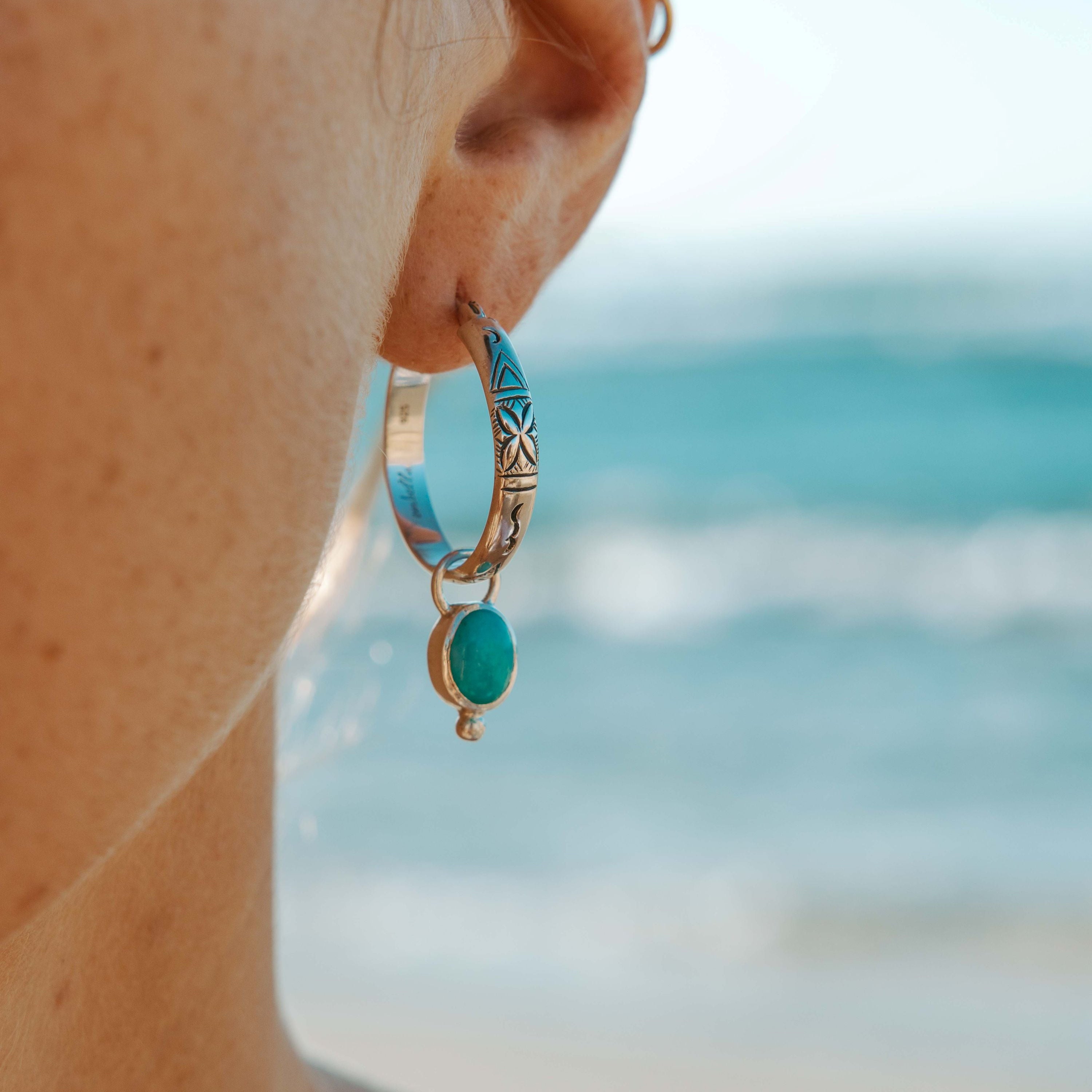 Our handmade earrings are uniquely designed in Australia to embody the essence of the beautiful land and sea. These bohemian earrings feature natural stones like turquoise and larimar. Shells deepen the connection to the ocean. Explore boho hoop and stud earrings handmade in Australia today at Embella.