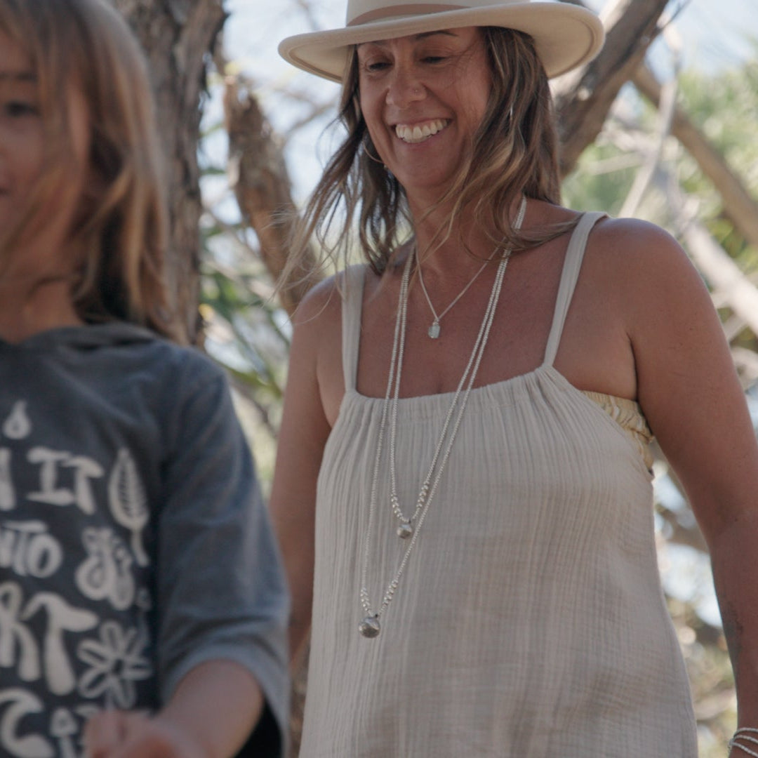 At the heart of the collection lies a beautiful story: inspired by Sally's daughter, Kailani, who leaves little love hearts wherever she goes — drawn on paper, traced into the sand, and collected in the form of shells, leaves and rocks. You will see little hand-drawn hearts throughout this collection.