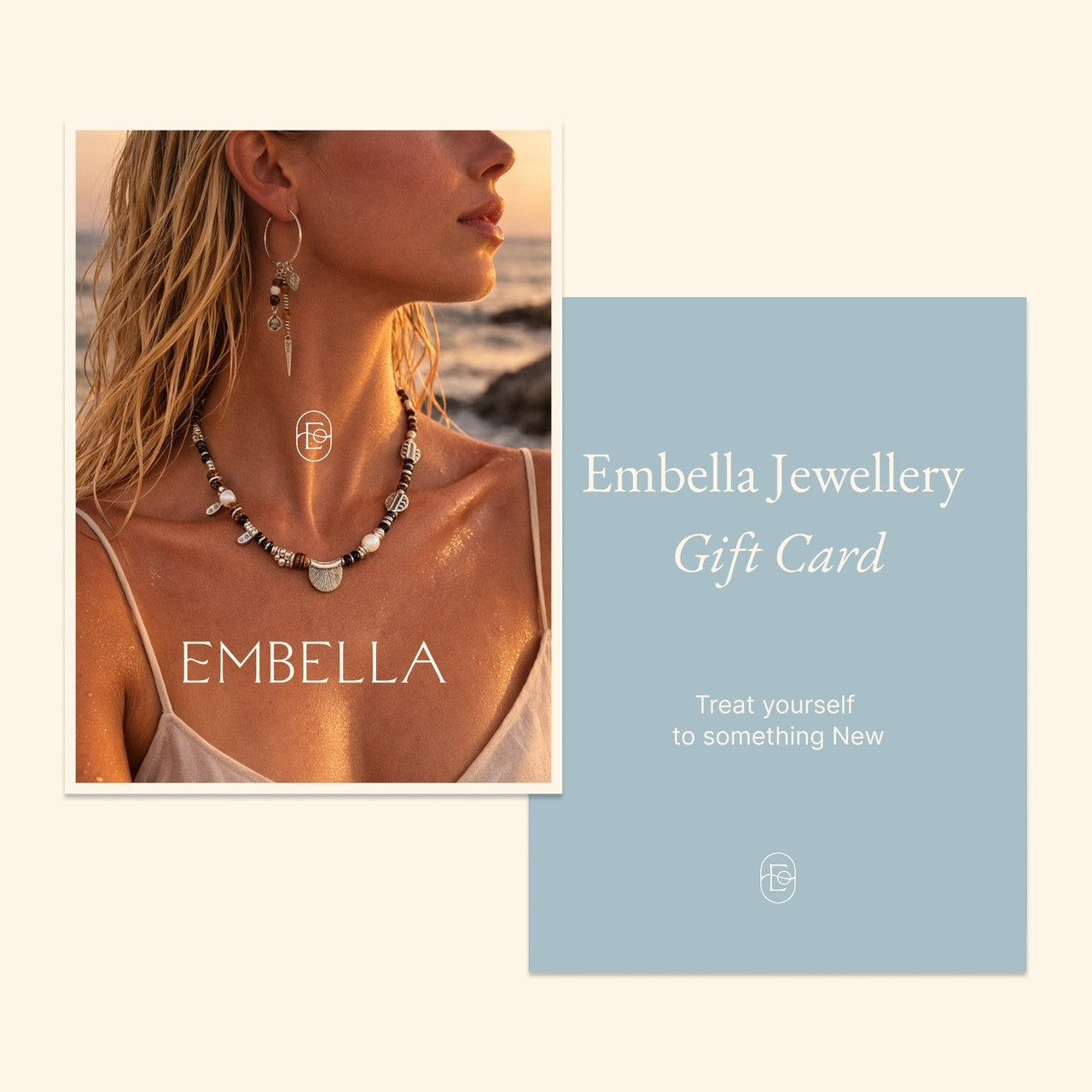 Looking for the perfect gift but not sure what to choose? Our Gift Vouchers are the ideal solution. Delight your loved ones with the freedom to select their favourite jewellery pieces from our exquisite collection. With our E'gift cards, giving the gift of style and elegance has never been easier. Let them explore a world of handcrafted treasures, from stunning necklaces to enchanting earrings. Whether it's a birthday, anniversary, or any special occasion, our Gift Vouchers are a thoughtful way to show you care. Make their day truly memorable with Embella Jewellery. Shop now and make their dreams come true.
