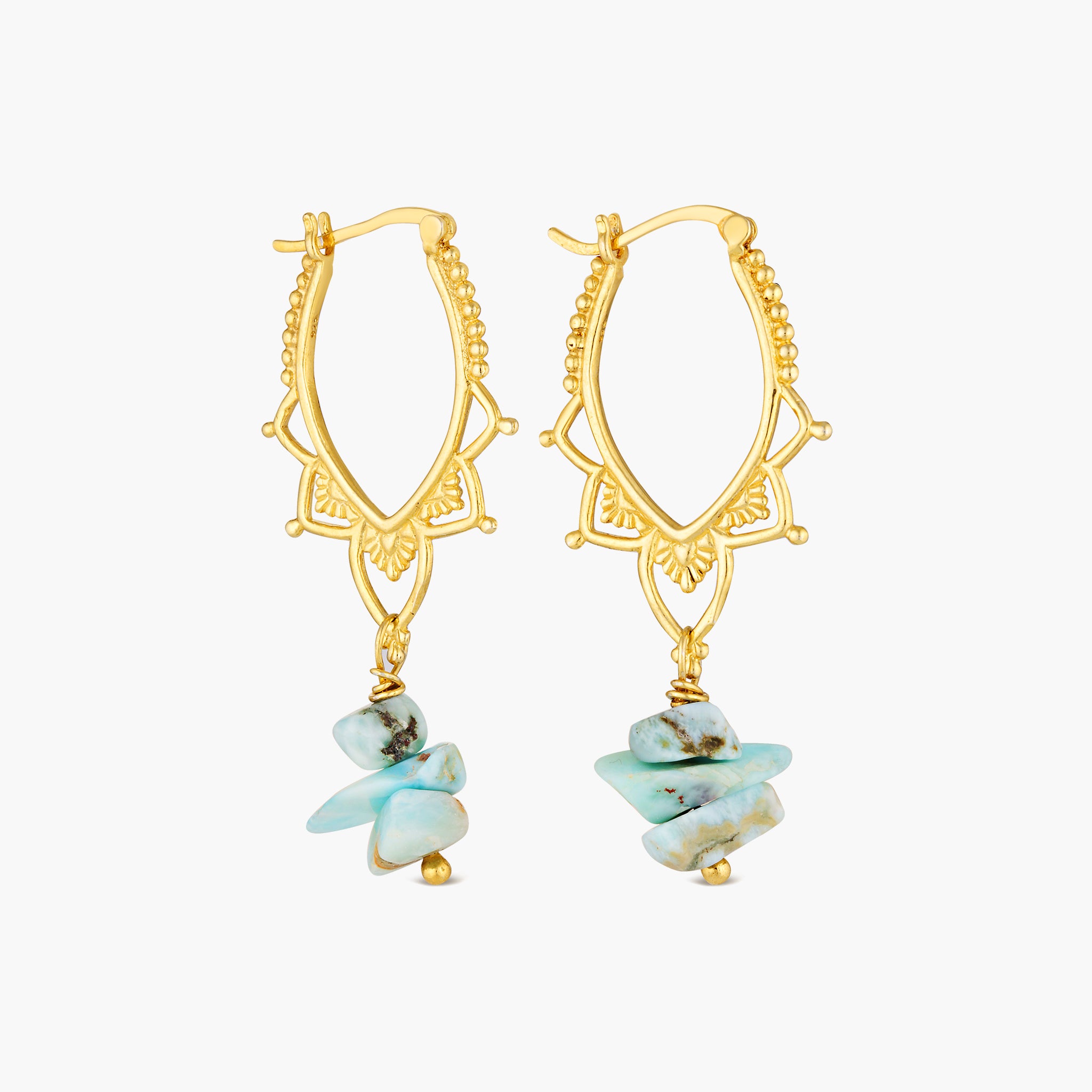 Larimar Gold Lotus Hoops