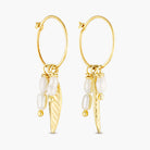 Elegant and endlessly versatile, the Pearl Daphne Hoops are crafted from gold-plated sterling silver with a delicate, feminine design. Featuring removable pearl and leaf charms, these hoops can be styled several different ways—wear them with three charms, just the pearls, just the leaf or as simple gold hoops. A timeless piece for effortless sophistication.