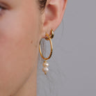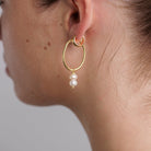 Effortlessly elegant, the Pearl Venus Hoops are designed for versatility and timeless charm. Crafted from gold-plated sterling silver, these oval-shaped hoops feature a removable charm with two lustrous pearls, allowing you to switch between a statement look or sleek, minimal hoops. A perfect balance of sophistication and ease—wear them your way, every day.