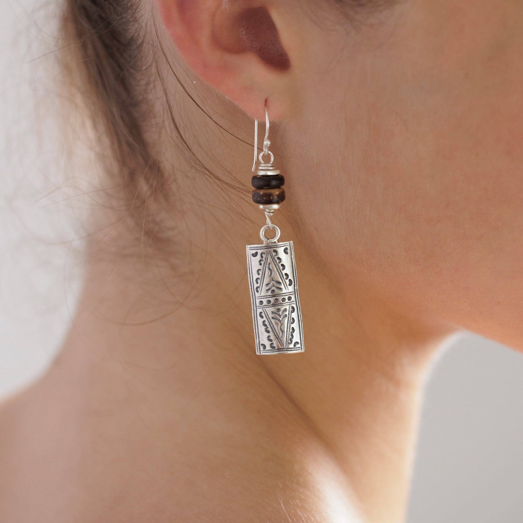 Earthy and elegant, the Forest Willow Drops are a tribute to nature’s quiet beauty. Crafted from Hill Tribe silver, each piece features a delicate hand-stamped design, paired with natural wooden beads for a warm, organic touch. Lightweight and effortless, these earrings bring a sense of grounding and connection to every wear—perfect for those who find beauty in simplicity.