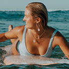 Pictured worn with the Silent Melody Hoops and Ocean Crown Swirl Studs