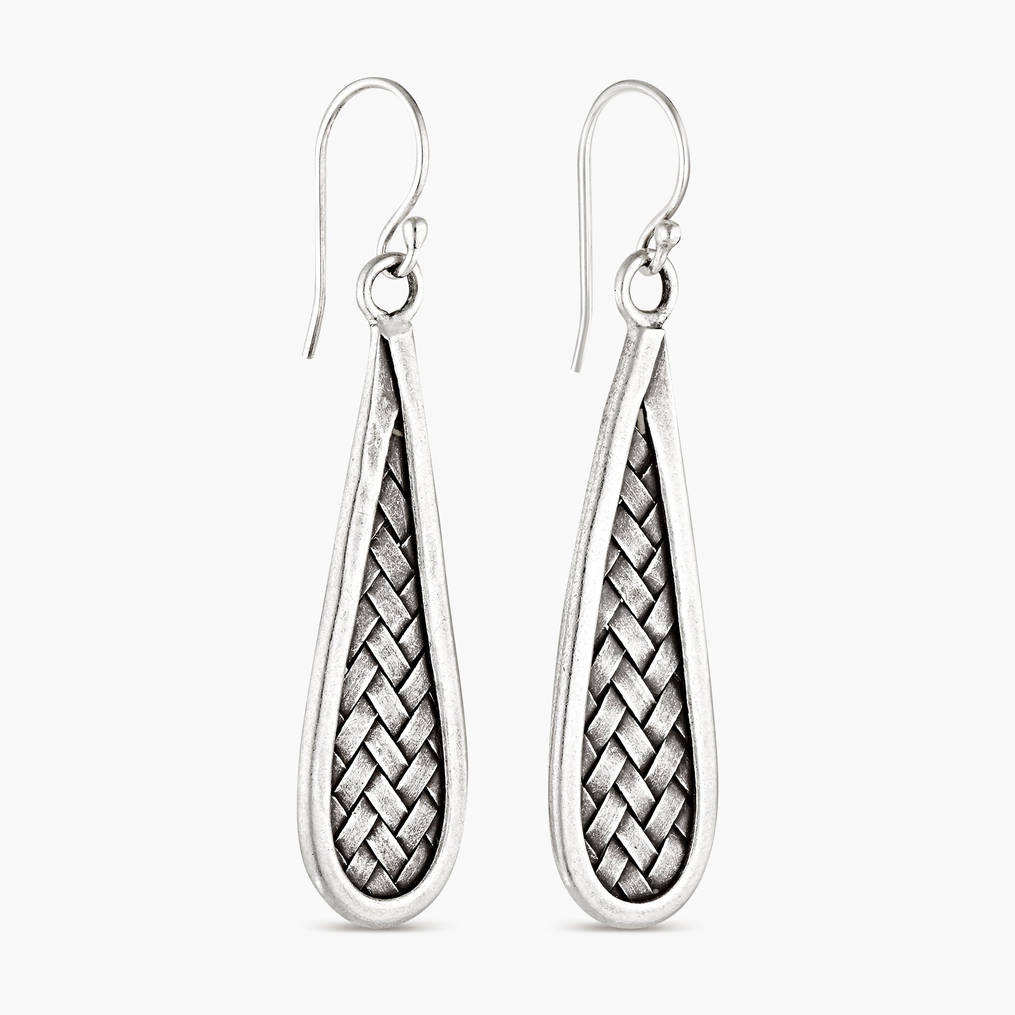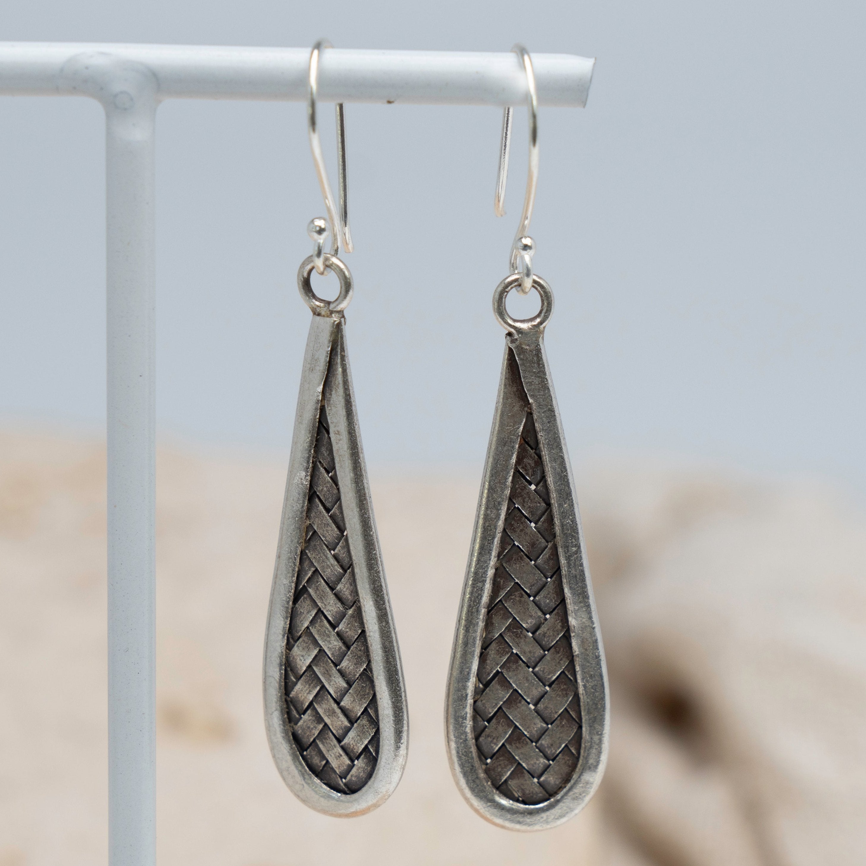 The Braided Bliss Drops feature an elegant woven design in a teardrop shape, handcrafted from authentic Hill Tribe silver. These earrings capture a perfect balance of texture and form, with intricate braiding that adds depth and dimension. Suspended from sterling silver ear hooks for comfortable wear, they offer a sophisticated yet effortless look, perfect for adding artisanal charm to any outfit.