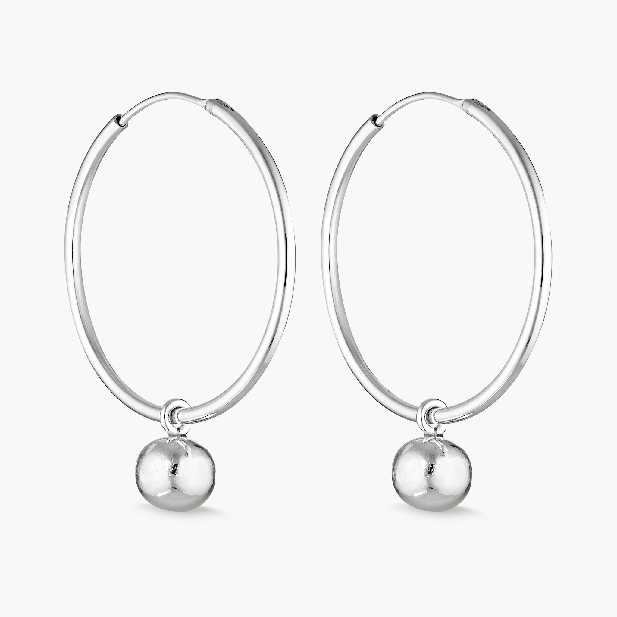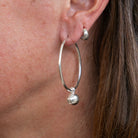 Elevate your everyday with the silver Dew Drop Hoops—bold yet effortless. Crafted from sterling silver, these large hoops feature a removable Hill Tribe silver ball, allowing you to style them your way. A timeless design with a touch of artisanal charm, perfect for every adventure.