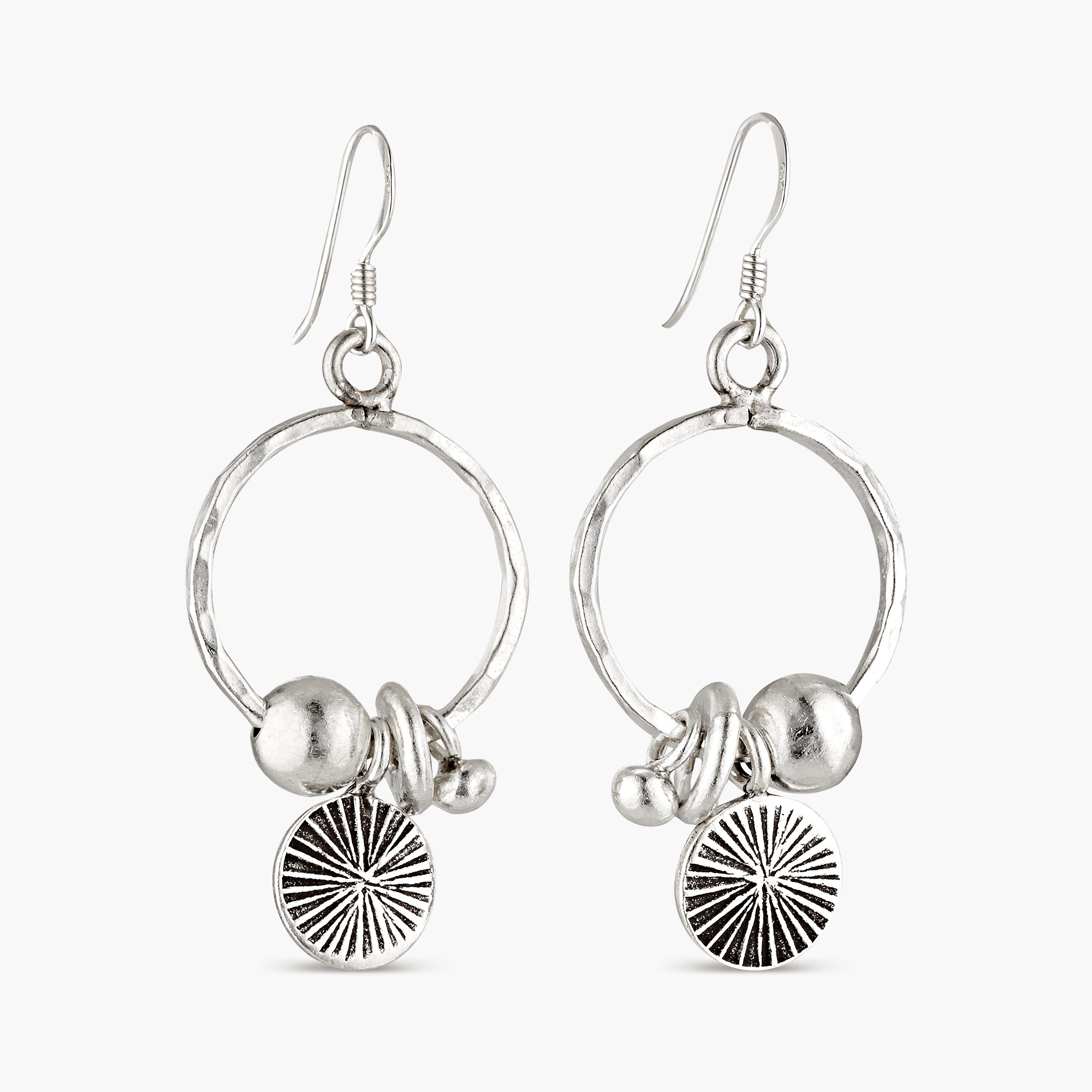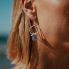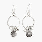 The Kshanti Earrings in Large showcase two movable rings bound together and finished with a series of pure silver charms