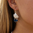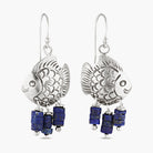 Inspired by the mysticism of the sea, the Pisces Drops feature Hill Tribe silver fish charms paired with deep blue Lapis Lazuli beads, suspended from sterling silver ear hooks. Lapis Lazuli is known for its calming, truth-enhancing energy — the perfect complement to the symbolic fish, representing intuition, emotion, and flow.