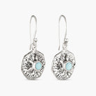 The Larimar Coin Drops are a beautiful homage to the ocean's treasures. Crafted from sterling silver, these earrings feature a charming sand dollar design with a larimar stone at its centre. The sand dollar is a type of sea urchin, known for its symbolism of peace and tranquillity and beautiful flower-like design on its shell.