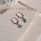 Embrace the tranquil beauty of the ocean with our Larimar Lotus Hoops. These stunning earrings feature a flower-shaped hoop design with tumbled larimar pieces hanging delicately from the bottom. Made from sterling silver, these earrings are not only stylish but also carry the soothing energy of larimar. Larimar is believed to promote relaxation, calmness, and clarity, making these earrings a perfect addition to your everyday wardrobe.