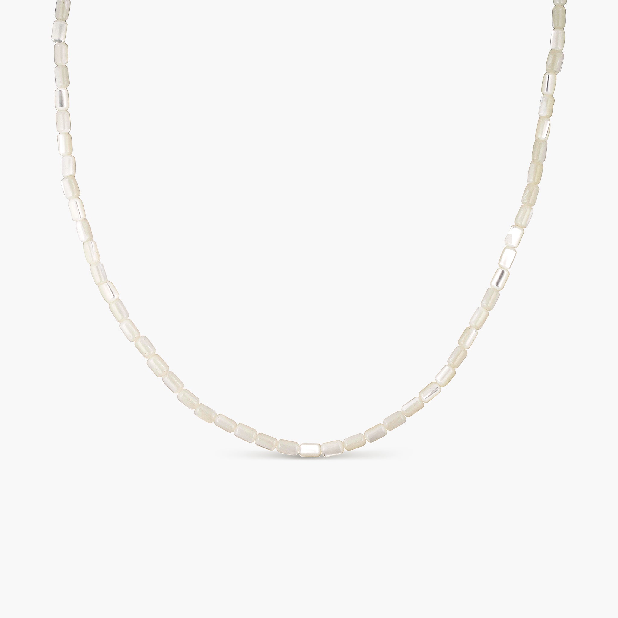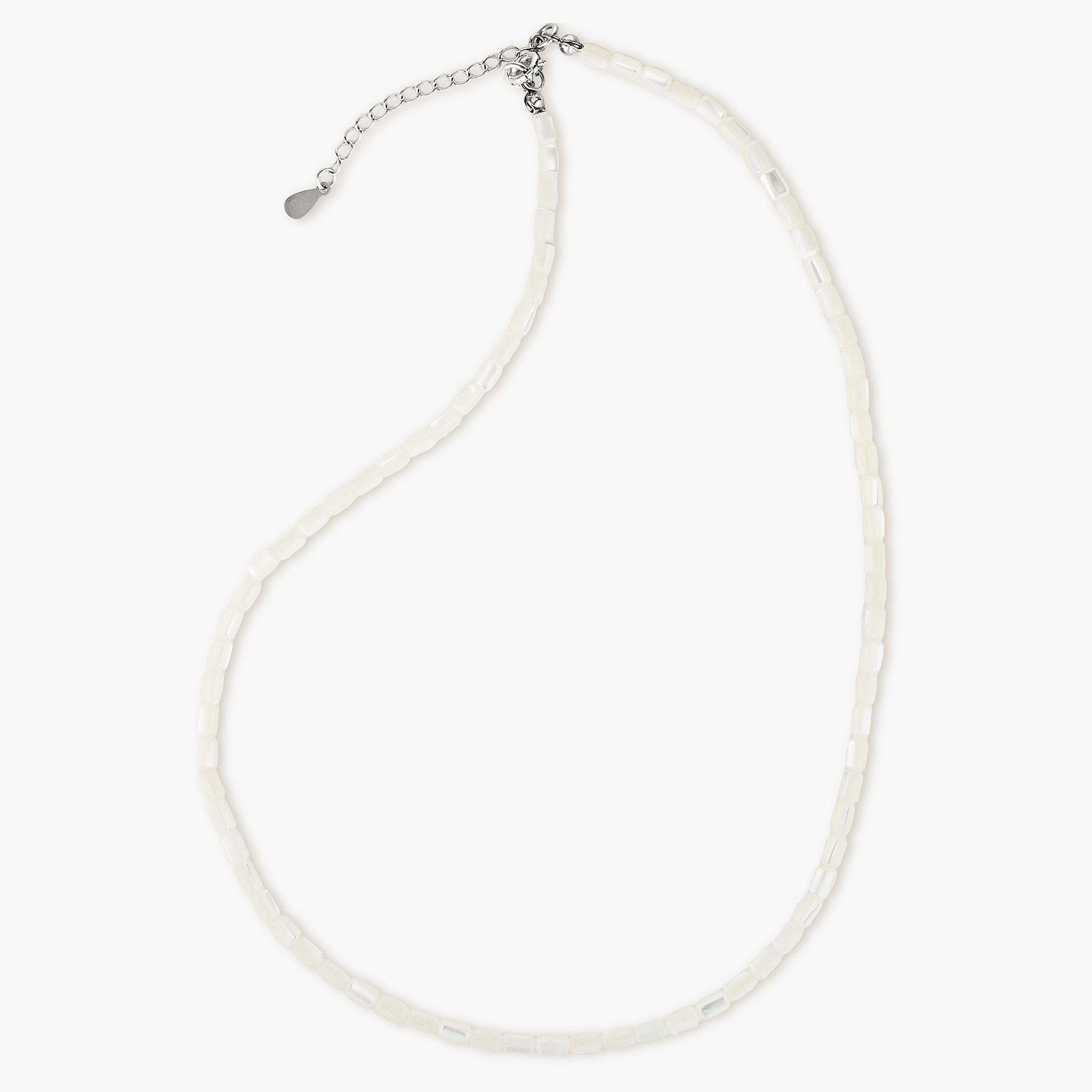 Ethereal and refined, the Pearl Dreamscape Choker features luminous Mother of Pearl beads threaded on waterproof jewellery thread and finished with a sterling silver clasp and adjuster.