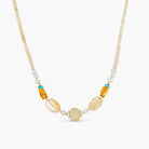 A radiant celebration of light and colour, the Amber Sunrise Necklace combines Honey Amber, Turquoise, Reconstituted Jade, Faceted Prehnite, and a faceted Citrine choker for a layered, sun-kissed effect. Handcrafted with sterling silver accents, each bead and stone is thoughtfully arranged to capture warmth, energy, and effortless beauty. Perfect for layering or wearing as a statement piece, this limited-edition necklace brings a luminous, ocean-inspired glow to any outfit — a timeless Embella treasure.