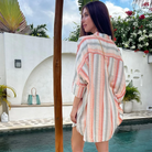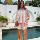 Made from a woven, lightweight, striped cotton with a beautifully soft palette of muted earthy tones.