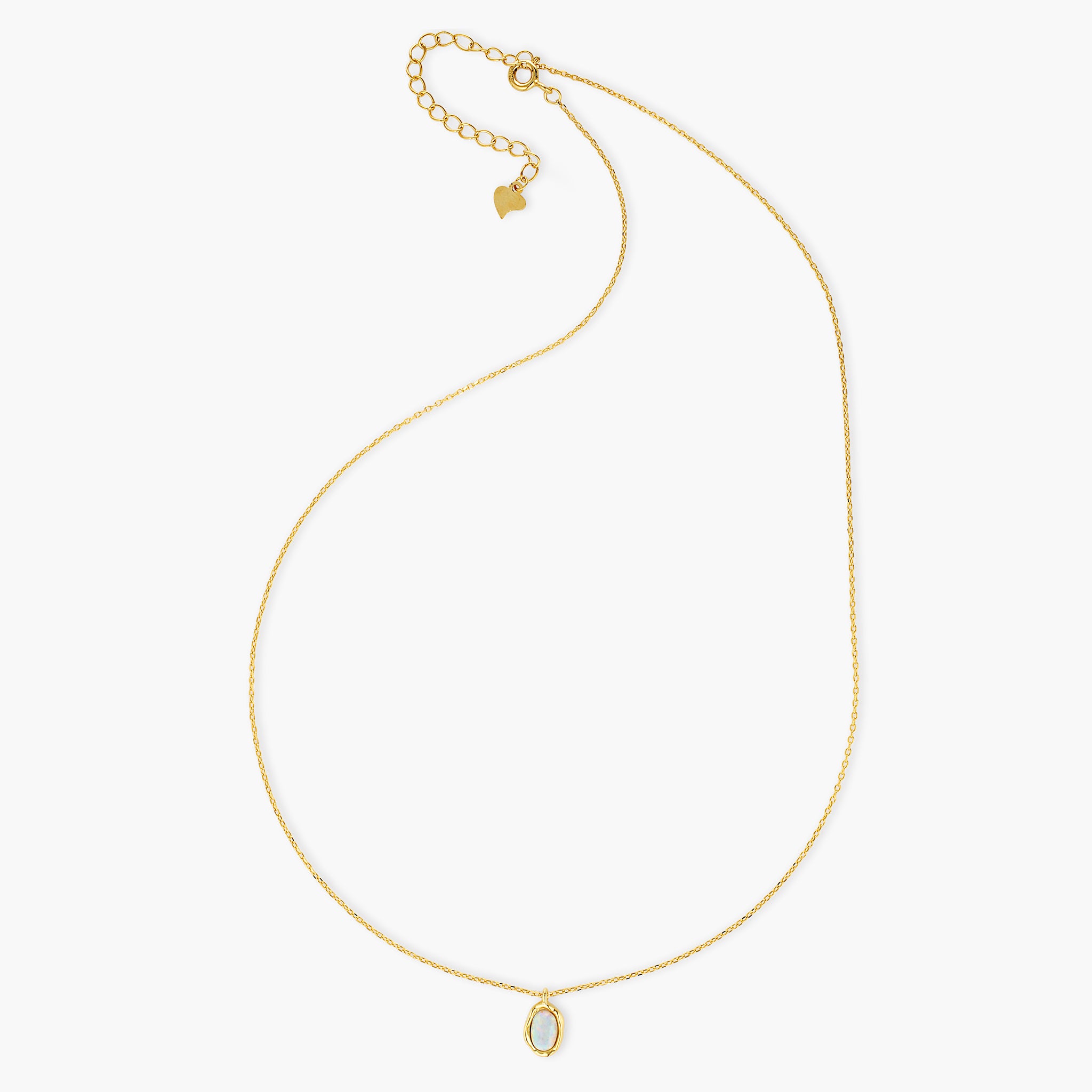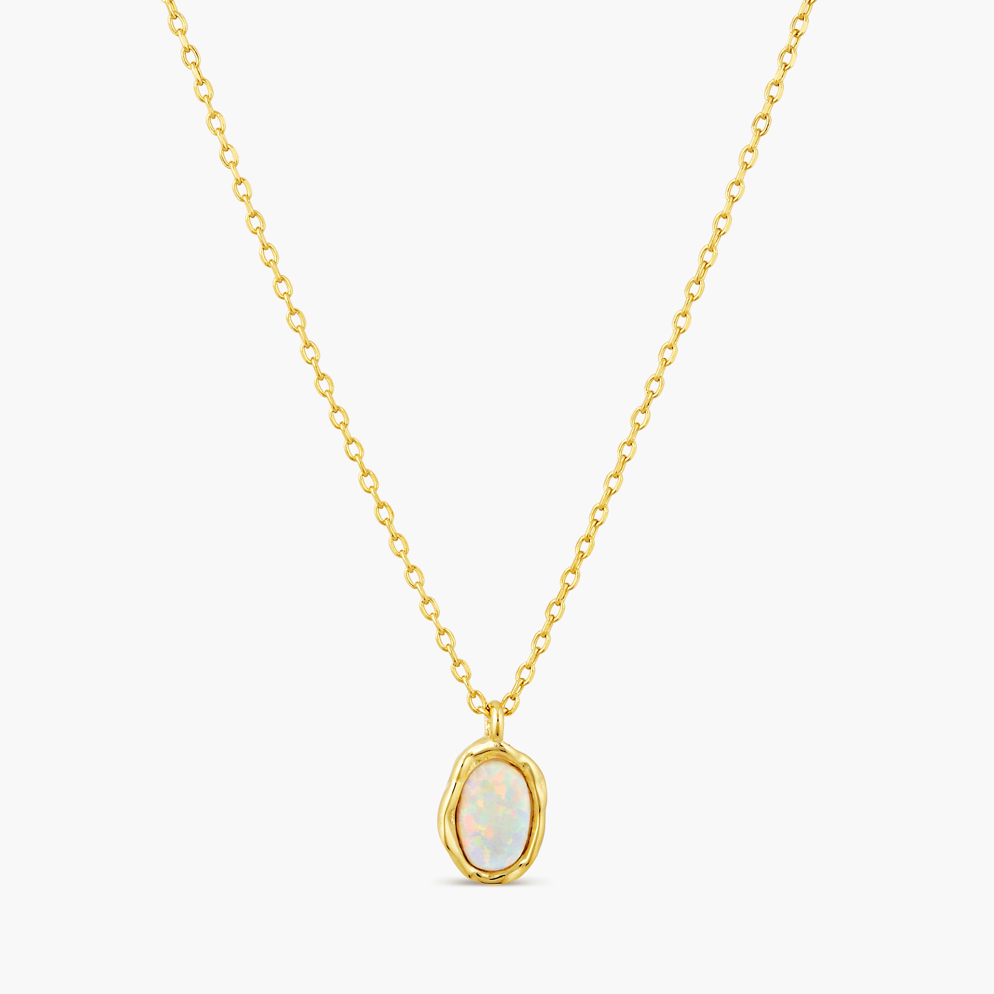 Delicate and luminous, the limited-edition Gold Opal Iridescence Necklace captures the beauty of understated elegance. Crafted from gold-plated sterling silver, it features a dainty round opal pendant suspended on a fine, minimalist chain. The opal’s natural iridescence shimmers softly in the light, reflecting hues of blue, pink, and gold — a symbol of hope, creativity, and harmony. Perfect for layering or wearing solo, this timeless piece adds a touch of refined radiance to any look.
