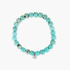 Bold and grounding, the Large Turquoise Sahara Bracelet features striking faceted turquoise beads, finished with a sterling silver Embella logo. Elasticated for ease and comfort, it’s designed to be worn alone as a statement or layered with finer pieces. A stone of protection and wisdom, turquoise has been cherished for centuries — connecting sky, sea, and spirit.