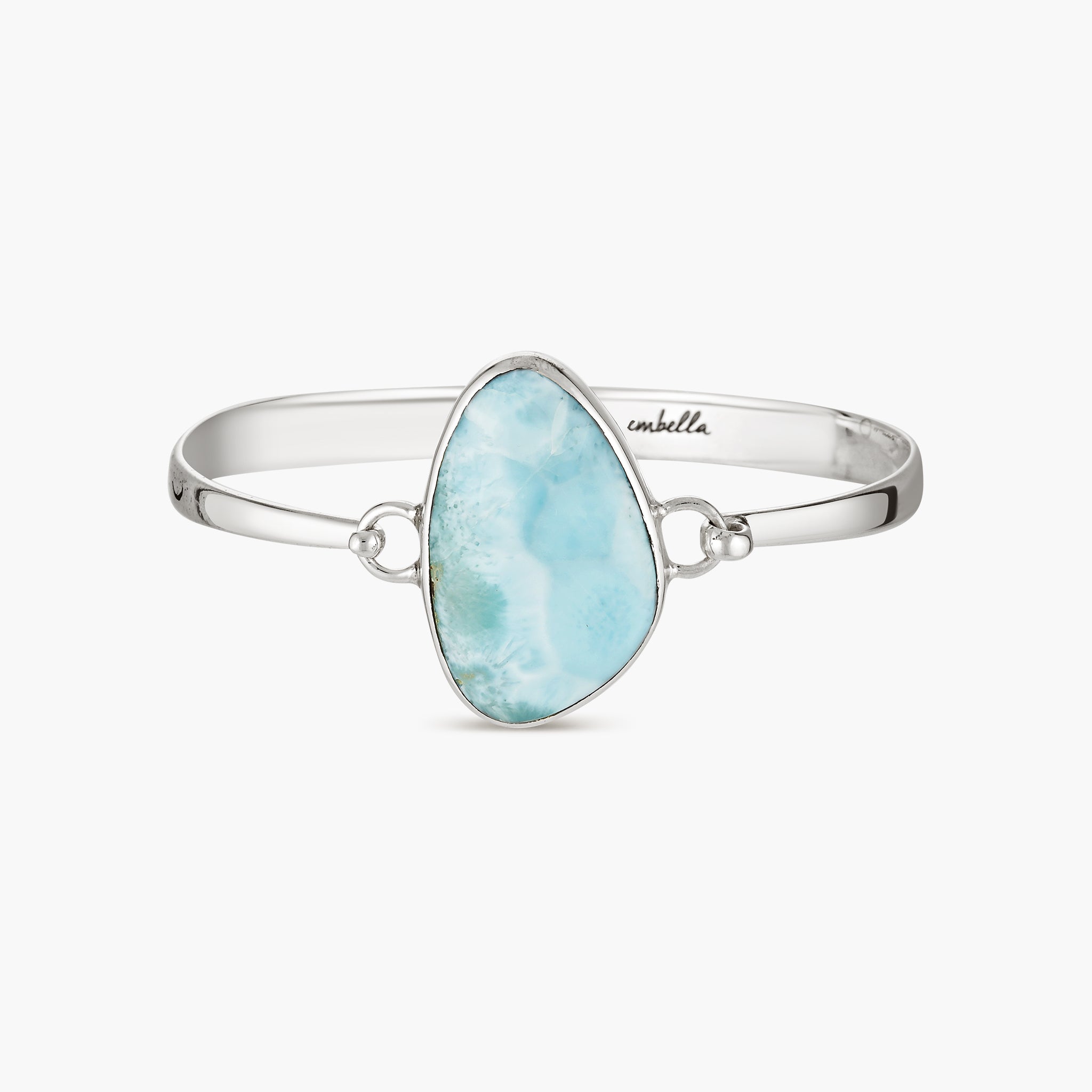 Elegant, serene, and effortlessly eye-catching, the Larimar Relic Bangle features a large Larimar stone set in sterling silver atop a beautifully crafted silver bangle. Each stone is unique, capturing the tranquil, ocean-inspired hues that make Larimar so coveted. Known as a stone of calm, clarity, and communication, Larimar is said to promote inner peace, balance, and emotional healing, making this bangle not just a statement piece but a talisman of serenity. Perfect for layering or wearing solo, it’s a timeless addition to any jewellery collection.