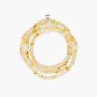 Elegant and versatile, the Quartz Dreamer Wrap can be worn as a bracelet or necklace, featuring faceted rutilated quartz beads on elasticated thread for effortless style. Rutilated Quartz is known as a stone of clarity, strength, and manifestation, believed to amplify energy and support intention-setting. Its natural golden threads make each piece uniquely radiant and captivating.