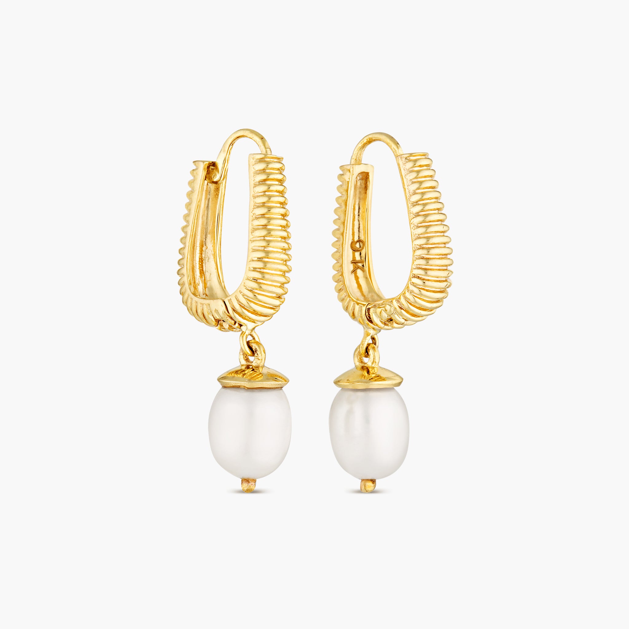 Golden texture, softened with pearl. Crafted in 9 carat solid gold, the Solid Gold Eden Huggies feature a subtle textured finish paired with a luminous pearl drop. Designed to feel timeless yet distinctive, they bring warmth and light to every look. Available in three sizes, you can choose your perfect fit — or layer them across multiple piercings for a curated golden glow.