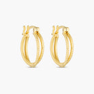Refined and effortlessly elegant, the Solid Gold Neverland Huggies are crafted from 9 carat solid gold and feature a delicate criss-cross, double-band design. The interwoven silhouette adds depth and interest while maintaining a timeless, understated finish.