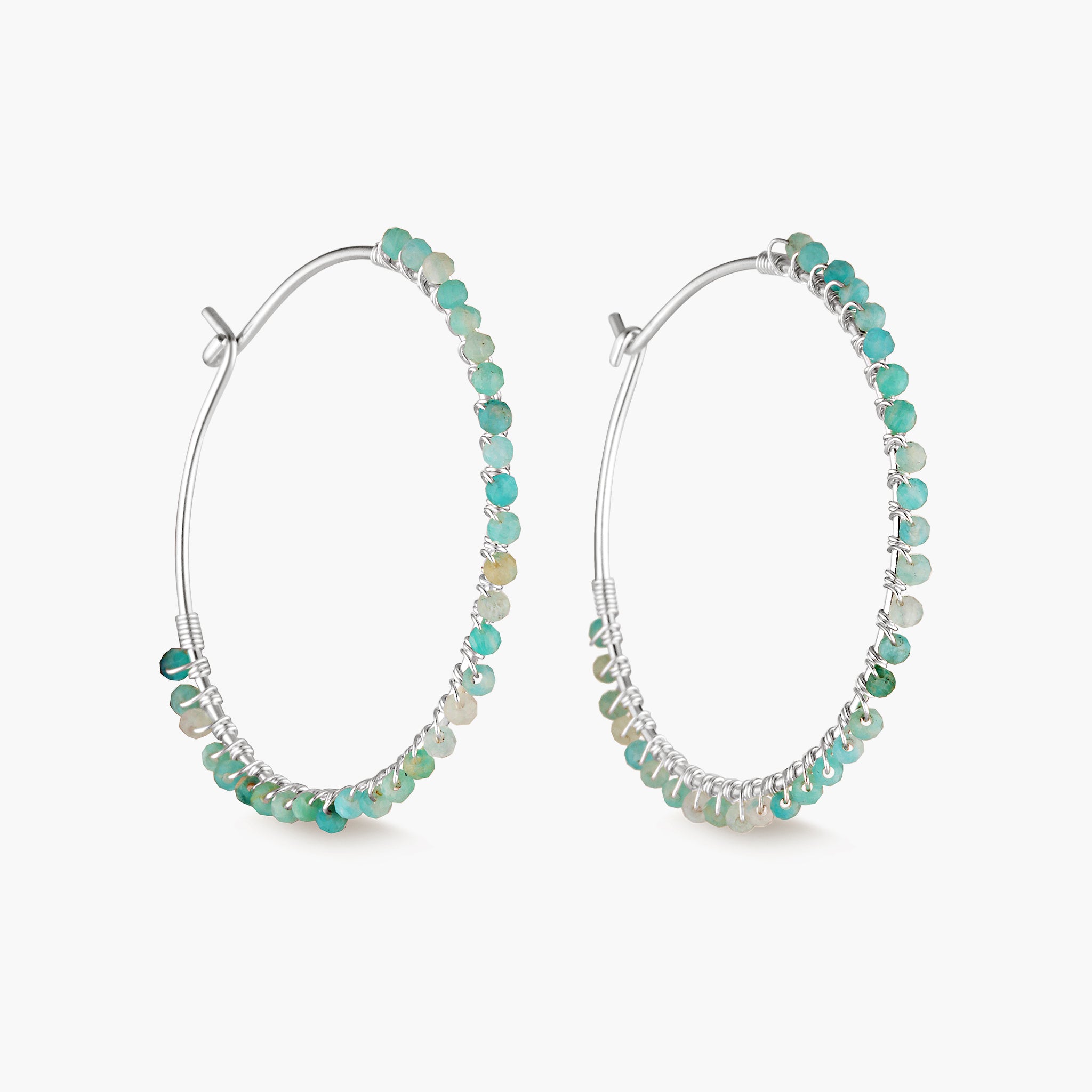 Introducing our Amazonite Beaded Hoops—a delicate fusion of sterling silver elegance and the soothing charm of faceted amazonite beads. Amazonite, renowned for its tranquil blue hues, is believed to bring balance and harmony to its wearer, helping one speak their truth. These are a sweet and playful addition to your jewellery collection.