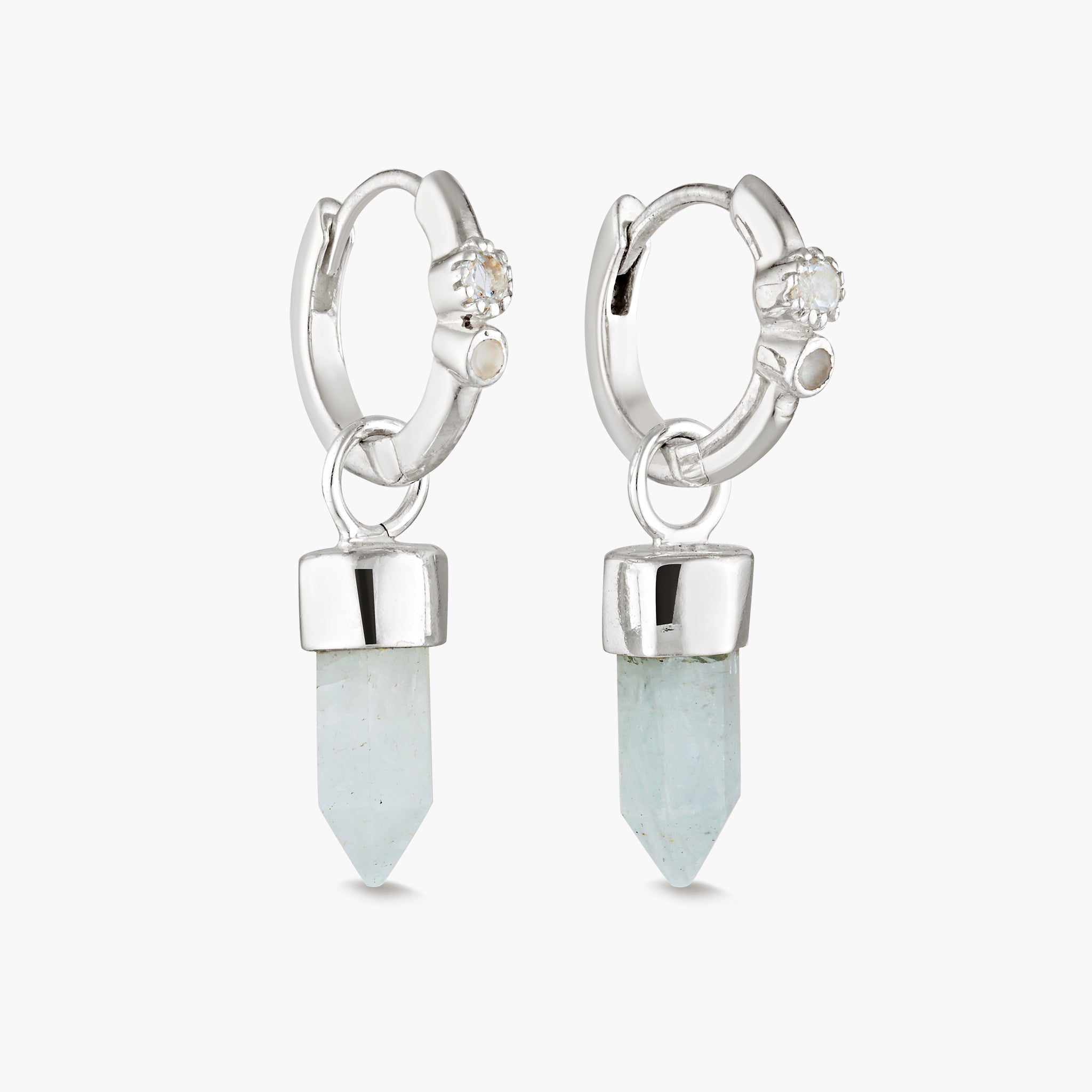 Discover the hero of versatility, our Aquamarine Lolita Huggies are handmade from sterling silver with small pieces of aquamarine and zirconia for those extra details. Dress these up with the feature terminated aquamarine charm. Aquamarine is known for its creative and calming properties, allowing its wearer to express themselves in artistic endeavours. You can remove the charm and place it on a chain for a matching necklace or bracelet - style it your way.